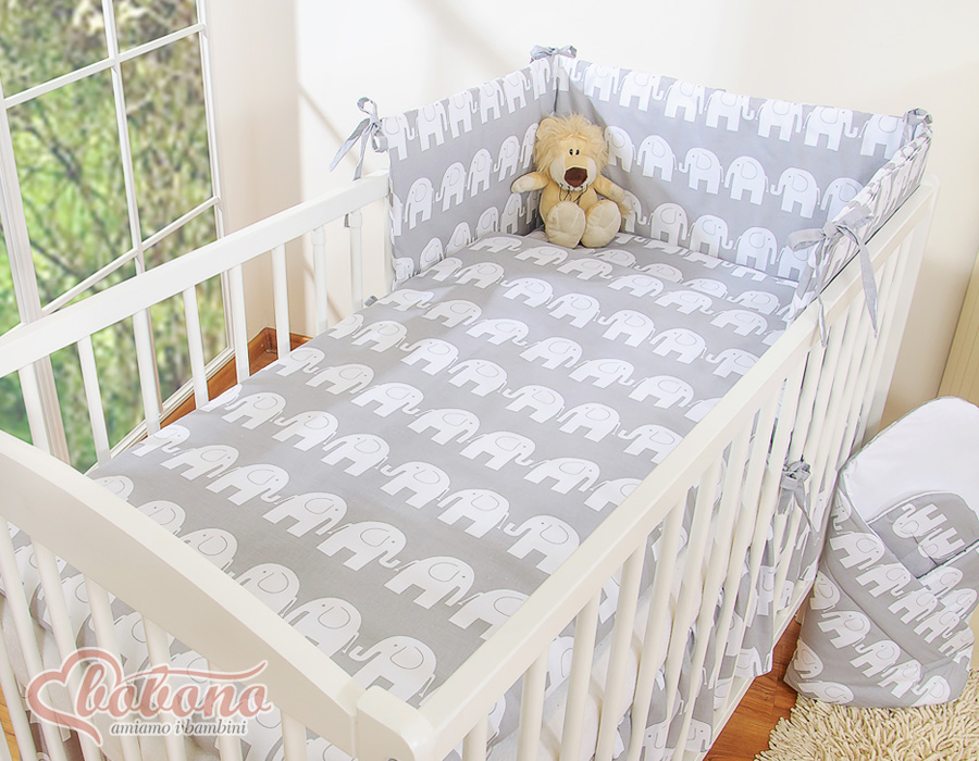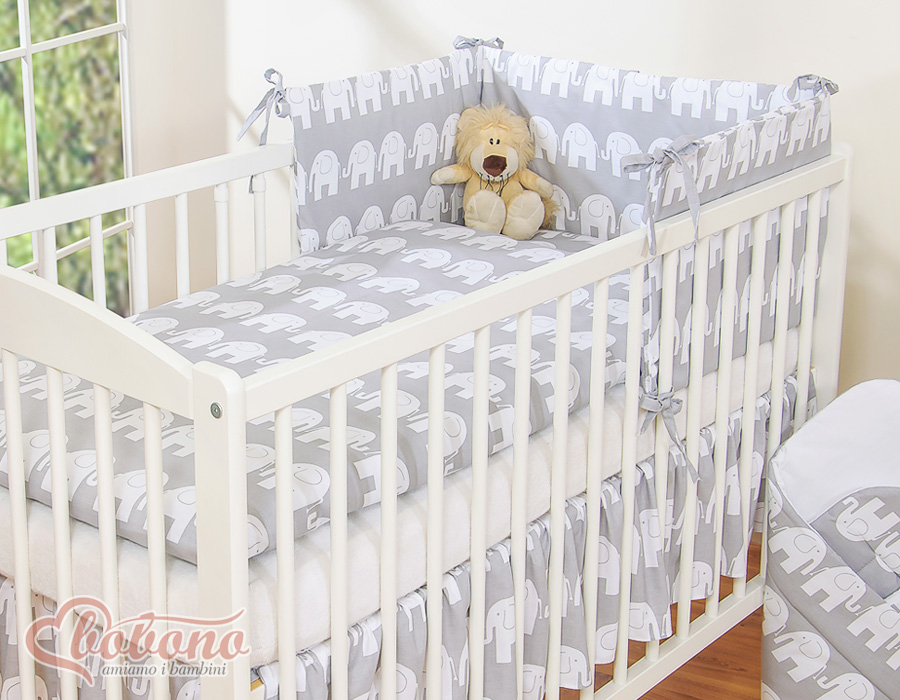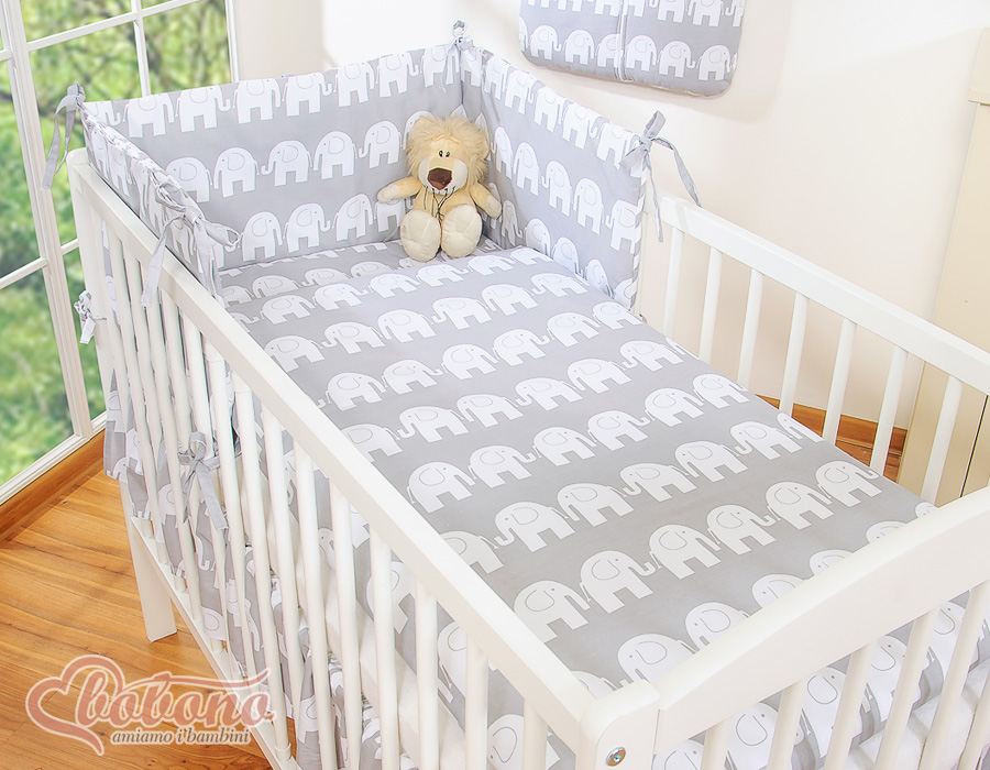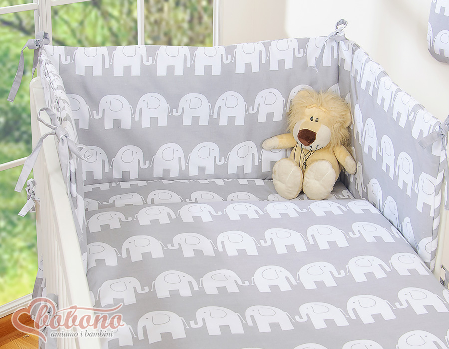 Stubenwagen » Bettwäsche für Babys » Bettwäsche für Babybett SIMPLE » Bettwäsche Sets für Babybett 120cm » Bettwäsche Set 3-tlg » Bettwäsche Set für Babybett 3-tlg - Simple Elefanten grau