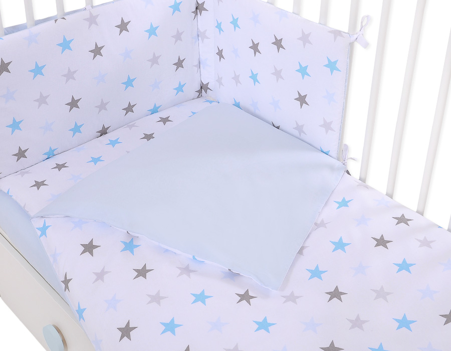Bettwäsche Set für Babybett 3-tlg - Sternen grau -blau