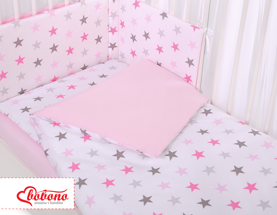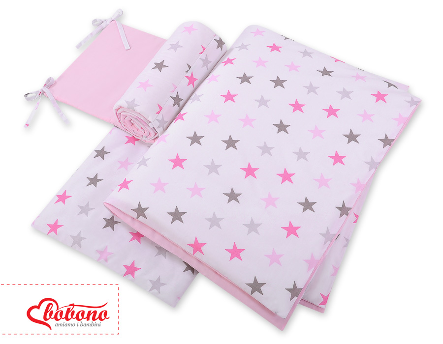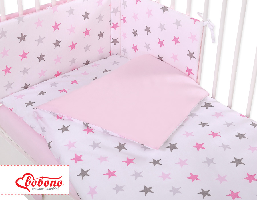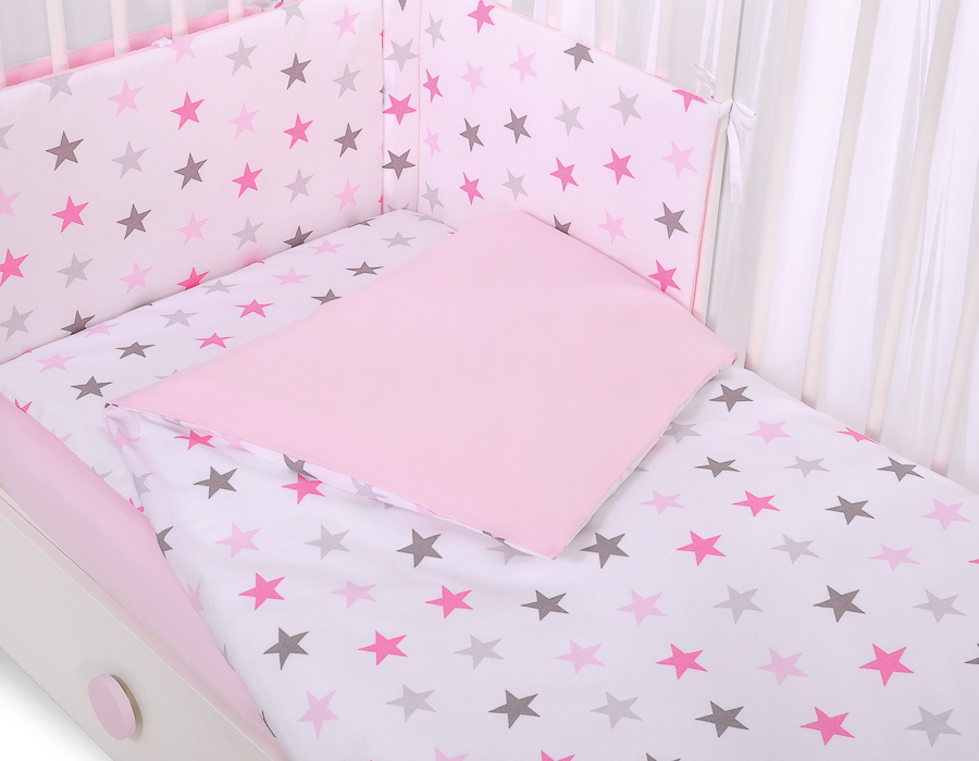 Bettwäsche Set für Babybett 3-tlg - Sternen grau - rosa/rosa