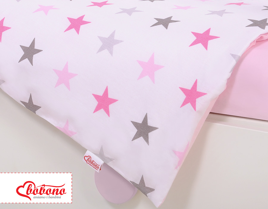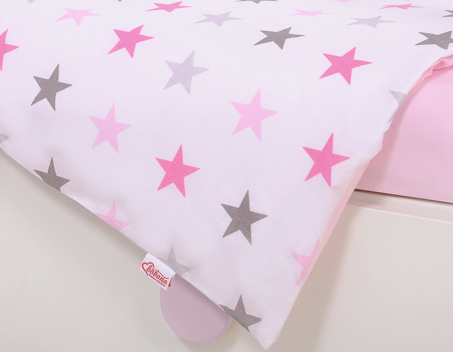 Stubenwagen » Bettwäsche für Babys » Bettwäsche für Babybett FUN & JOY » Bettwäsche Sets für Babybett 120cm » Bettwäsche Set 3-tlg » Bettwäsche Set für Babybett 3-tlg - Sternen grau - rosa/rosa