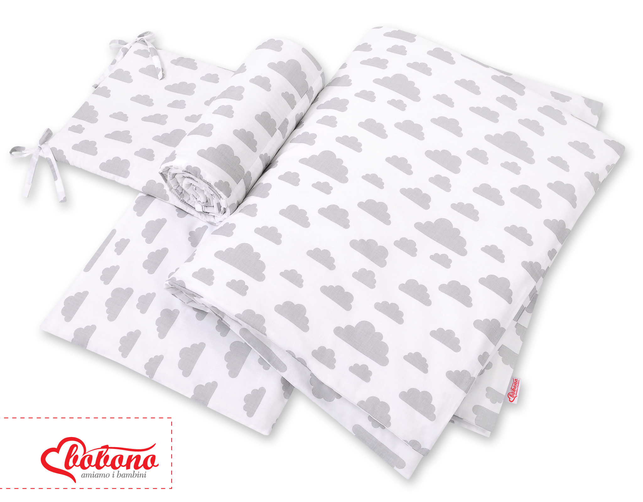 Bettwäsche Set für Babybett 3-tlg - Wolken grau