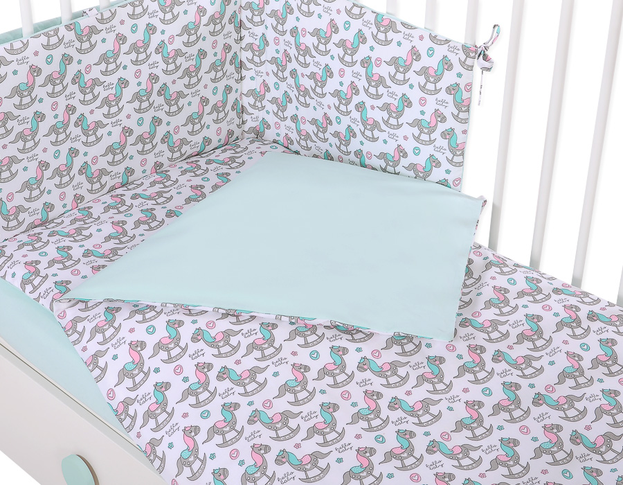 Stubenwagen » Bettwäsche für Babys » Bettwäsche für Babybett FUN & JOY » Bettwäsche Sets für Babybett 120cm » Bettwäsche Set 3-tlg » Bettwäsche Set für Gitterbett 3-tlg - Schaukelpferde