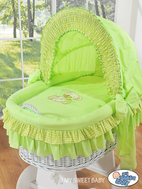 Stubenwagen » Stubenwagen » Stubenwagen mit Haube » Bettwäsche 2-tlg » Bettwäsche Stubenwagen Set 2-tlg mit Stickerei Bär mit Schleife Grün