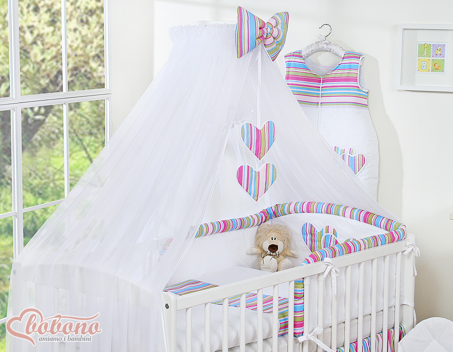 Bettwäscheset 11-tlg mit Moskitonetz - Hängende Herzen lila gestreiftBettwäscheset 11-tlg mit Moskitonetz - Hängende Herzen lila gestreiftBettwäscheset 11-tlg mit Moskitonetz - Hängende Herzen lila gestreift