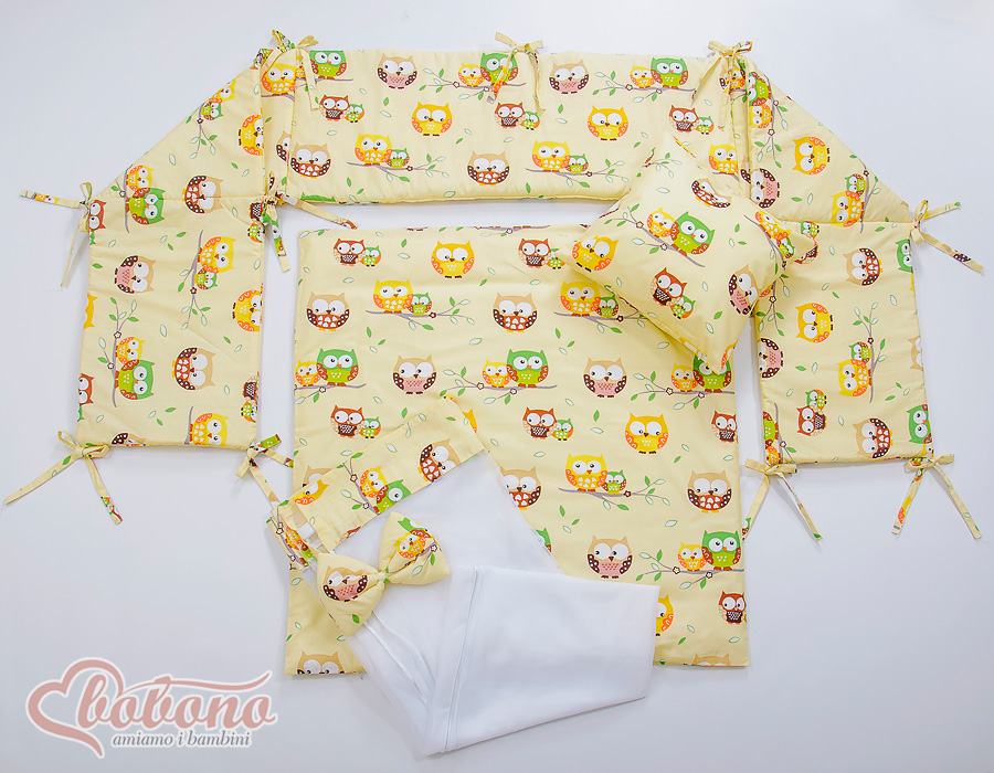 Bettwäscheset 6tlg für Beistellbett FABIO - Basic creme Eulen Wir präsentieren Ihnen ein wunderschönes Bettset für Beistellbettchen. Unsere Stoffe sind zertifiziert, für Baby´s unbedenklich.