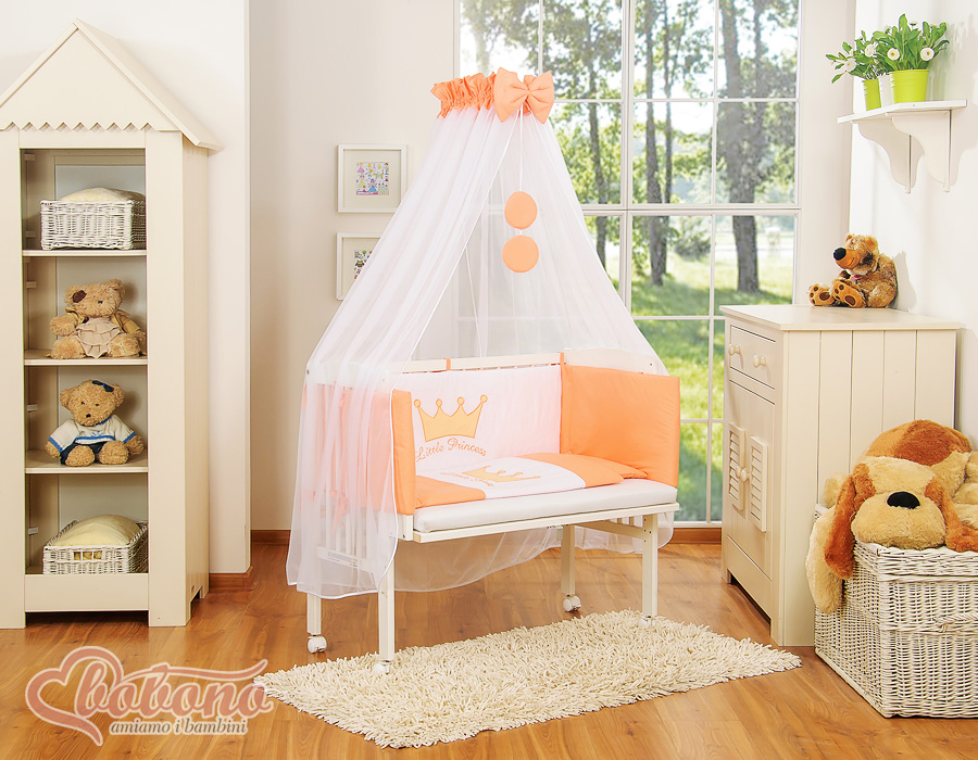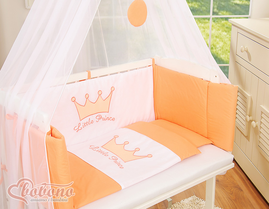 Bettwäscheset 6tlg für Beistellbett FABIO - Little Prince/Princess pfirsich Wir präsentieren Ihnen ein wunderschönes Bettset für Beistellbettchen. Unsere Stoffe sind zertifiziert, für Baby´s unbedenklich. Das Set beinhaltet: