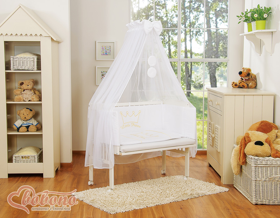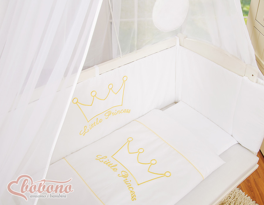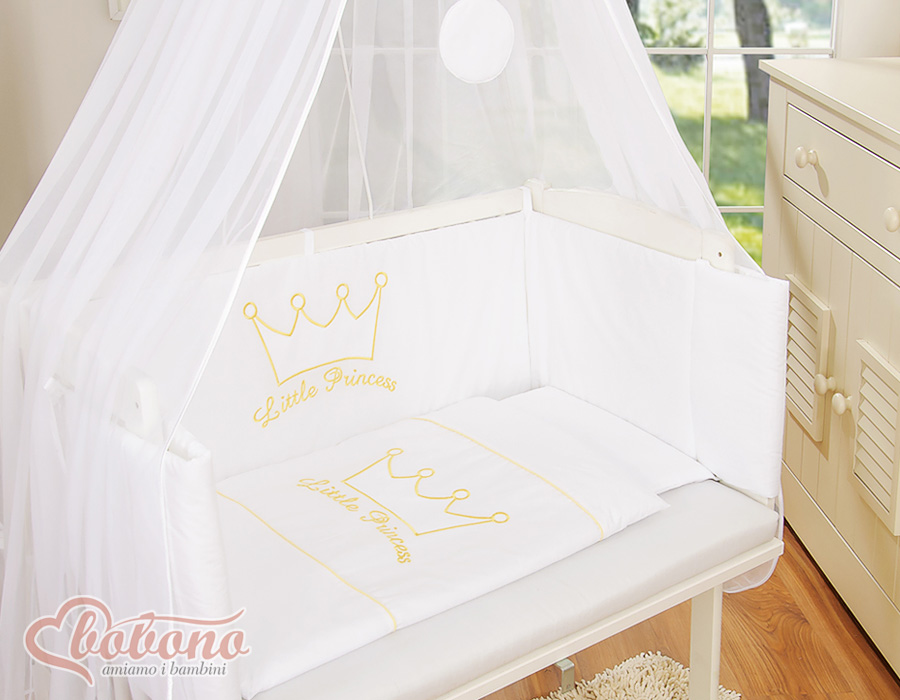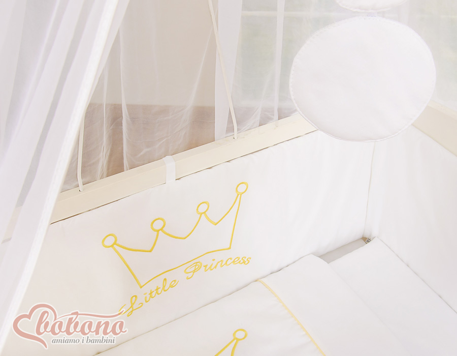 Bettwäscheset 6tlg für Beistellbett FABIO - Little Prince/Princess weiß Wir präsentieren Ihnen ein wunderschönes Bettset für Beistellbettchen. Unsere Stoffe sind zertifiziert, für Baby´s unbedenklich. Das Set beinhaltet:
