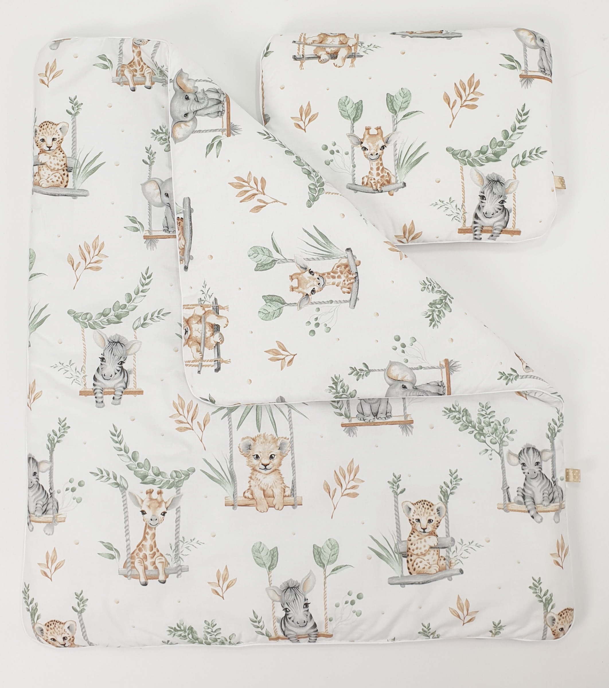 - Besonderheit: Kissen und Decke sind mit den Bezügen integriert