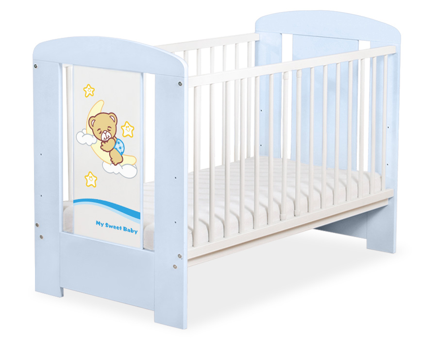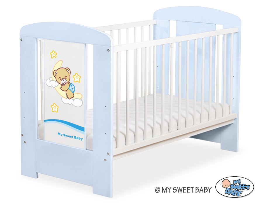 Stubenwagen » Babybett 60x120 cm » Babybett 60x120 Gute Nacht mit Matratze » Blau Babybett 120x60cm Gute Nacht