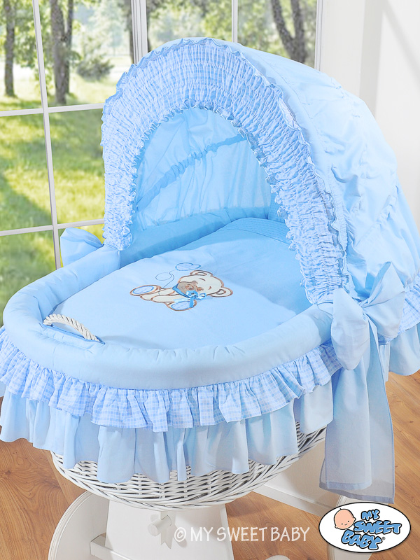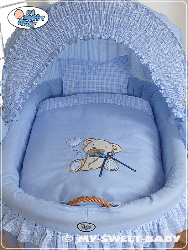 Blau Bettwäsche Set 2-tlg für Stubenwagen Stickerei Bär mit SchleifeBlau Bettwäsche Set 2-tlg für Stubenwagen Stickerei Bär mit Schleife