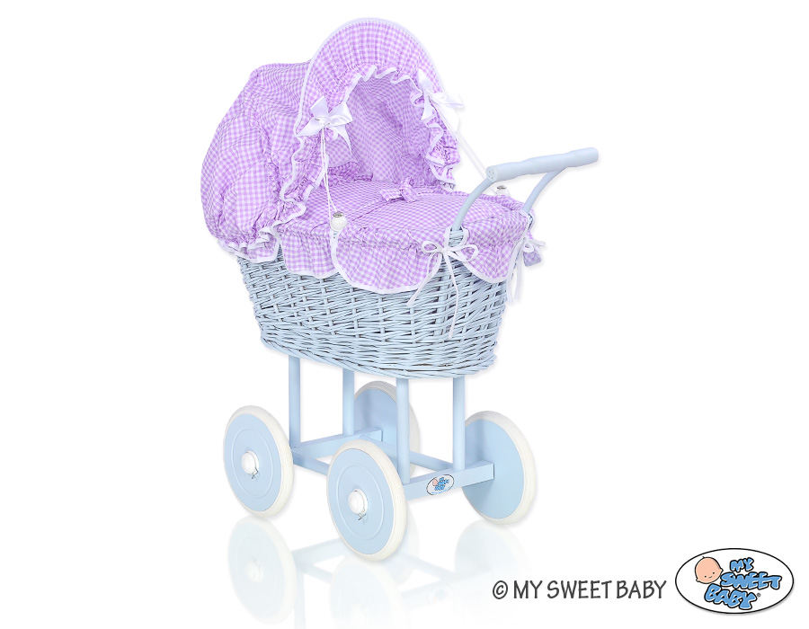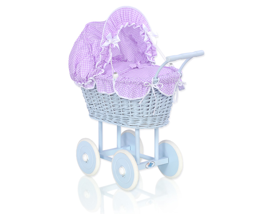 Stubenwagen » Spielzeug Kuscheltiere » Puppenwagen und Spielzeug » Puppenwagen aus Weide » Blau Weide Korb Puppenwagen Bettwäsche Lila Kariert nr 31699-289