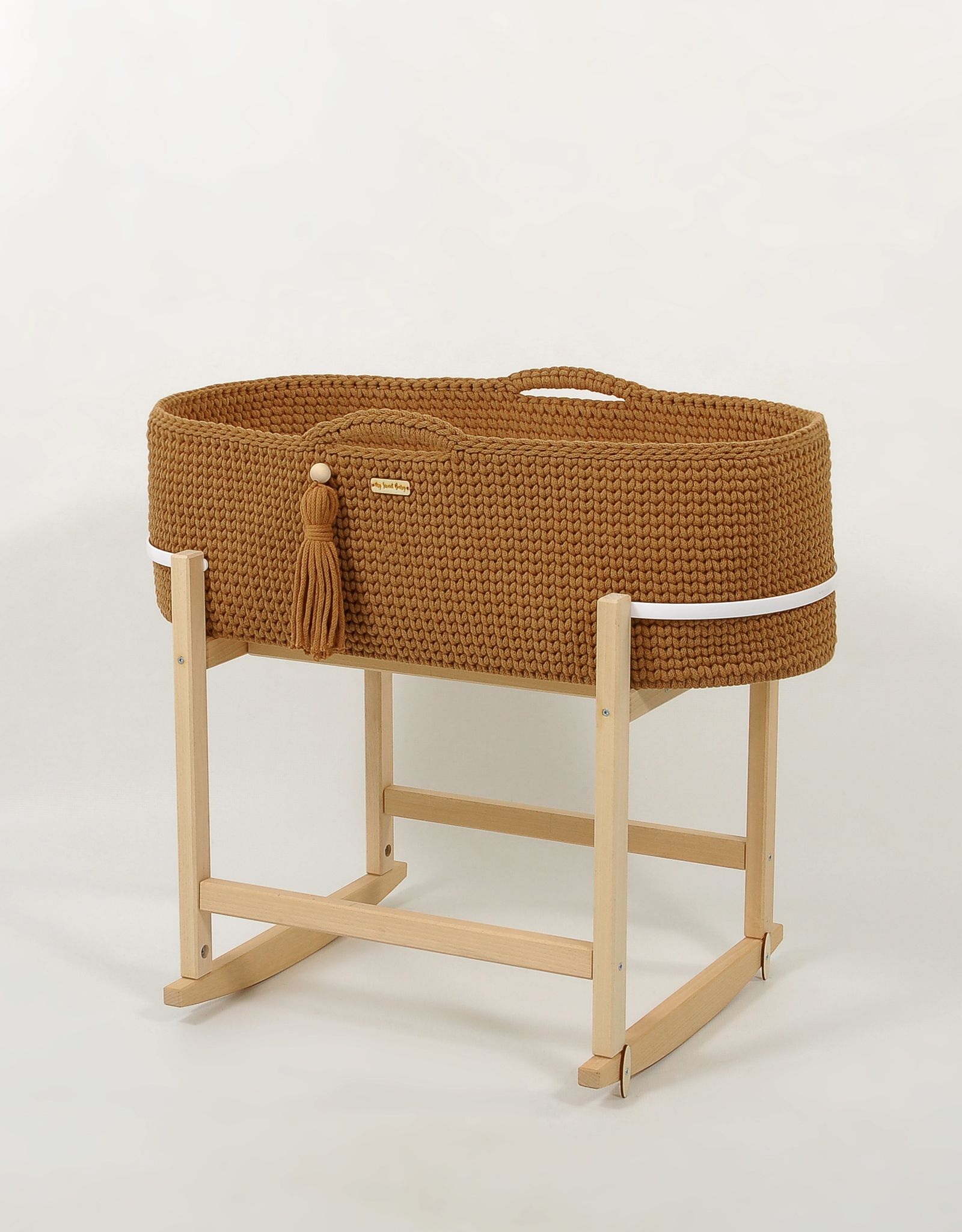Stubenwagen » Moseskorb mit Schaukelgestell » Boho Moseskorb mit Wiege - caramel