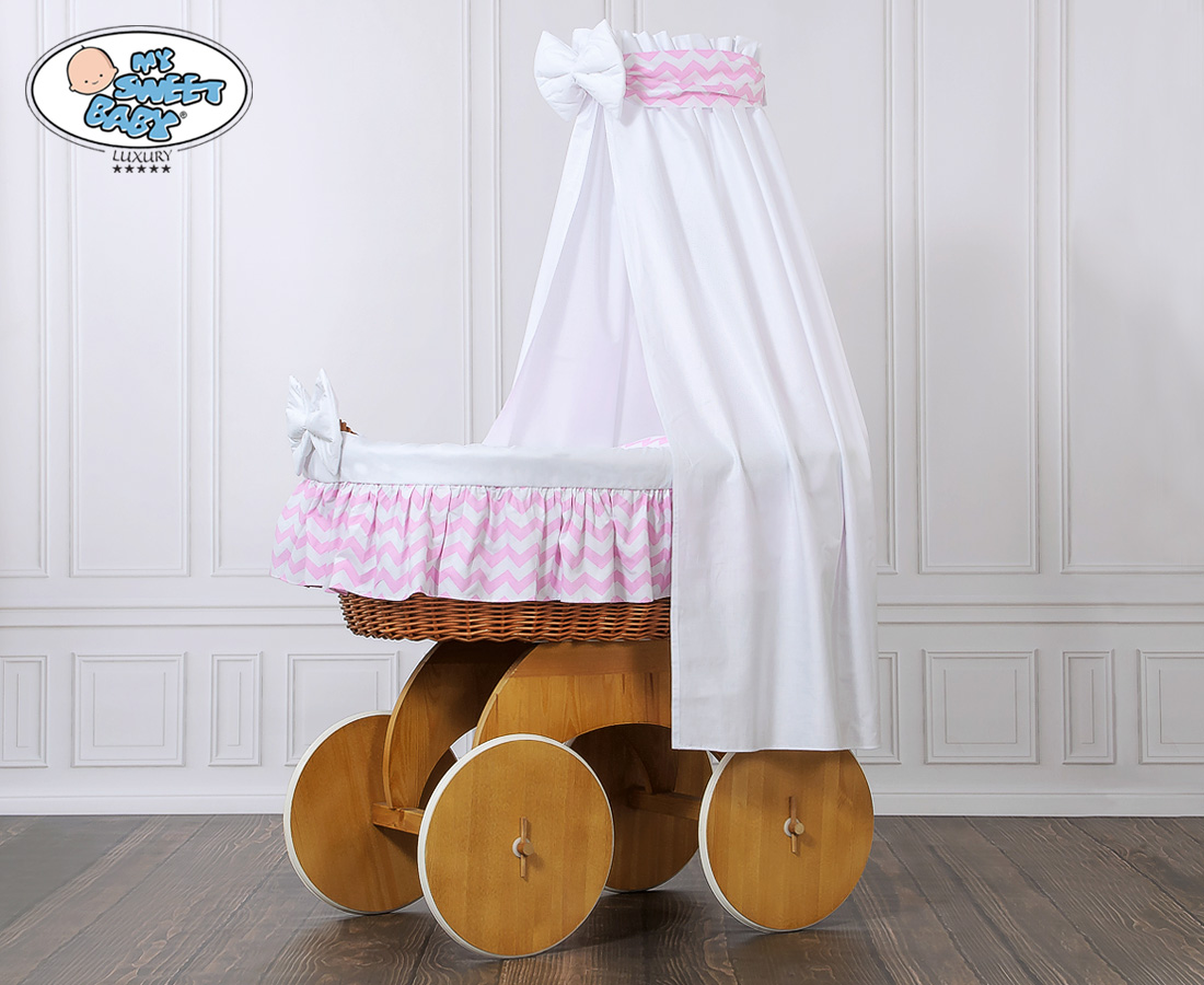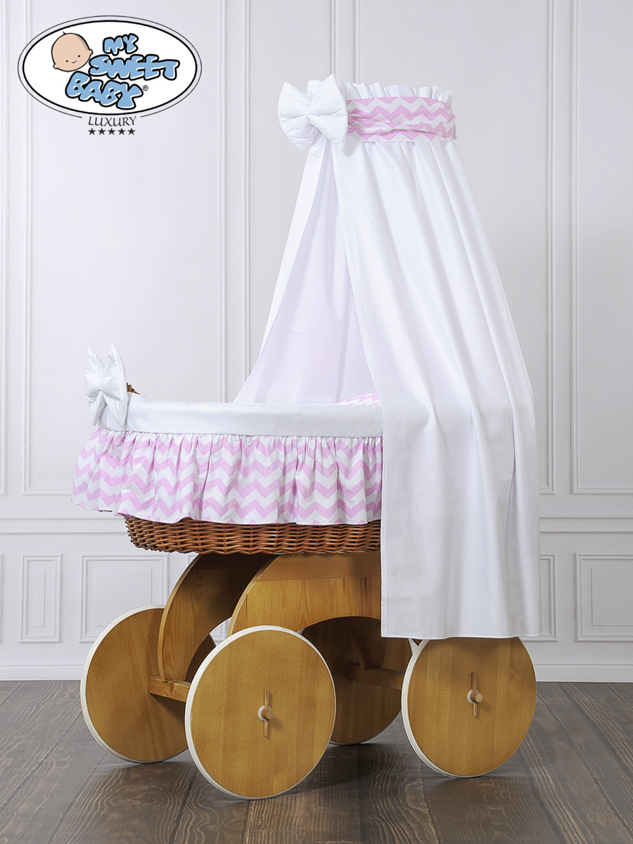 . Das Sortiment enthält auch ein Kissen (33x36cm) und eine Decke (75x65cm) (ohne separate Bettwäsche) mit einer speziellen Füllung aus Polyestergewebe. Die Füllung bietet einen optimalen Schlafkomfort, ist sehr gesund und wird für die Babys und Allergiker empfohlen. Decke und Kissen in den selben Farben wie der Korbbezug. Alle Elemente können in der Waschmaschine gewaschen werden.