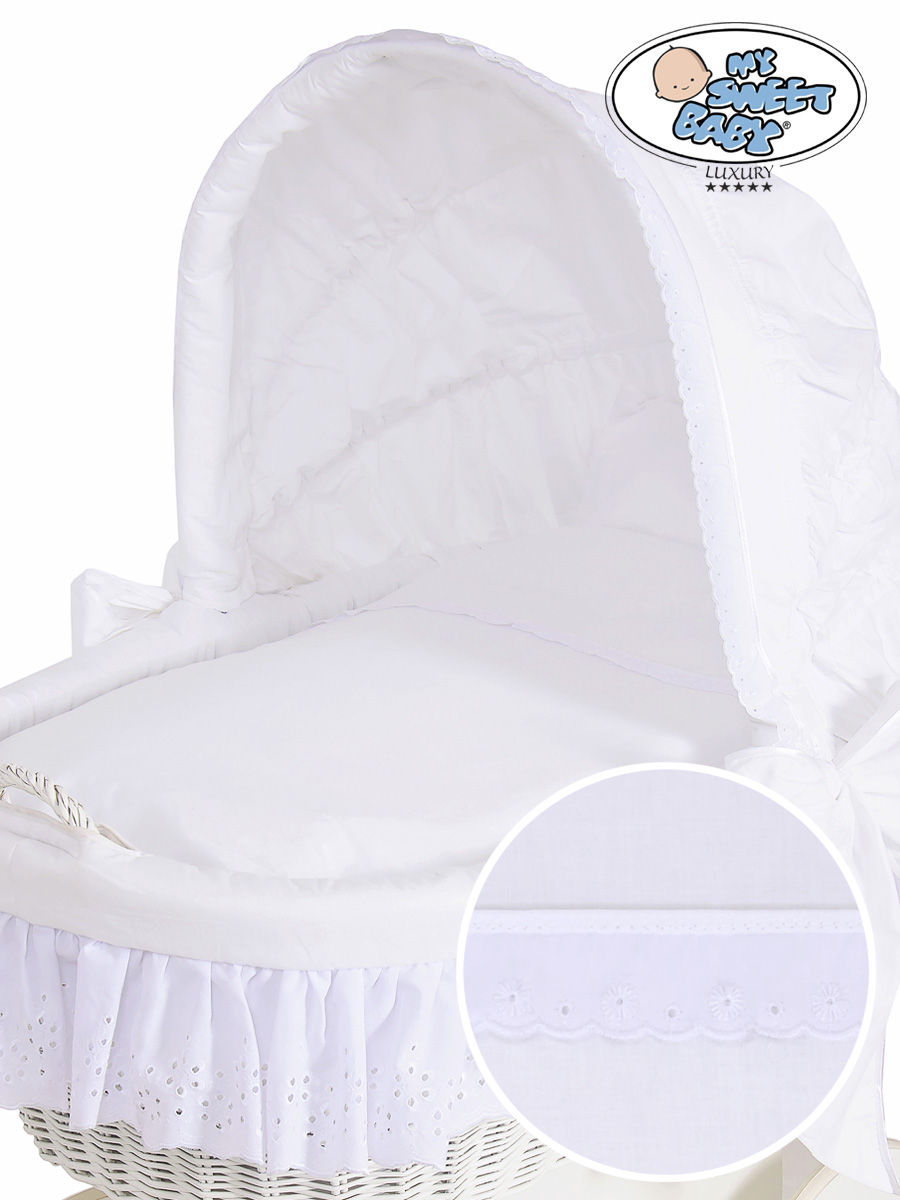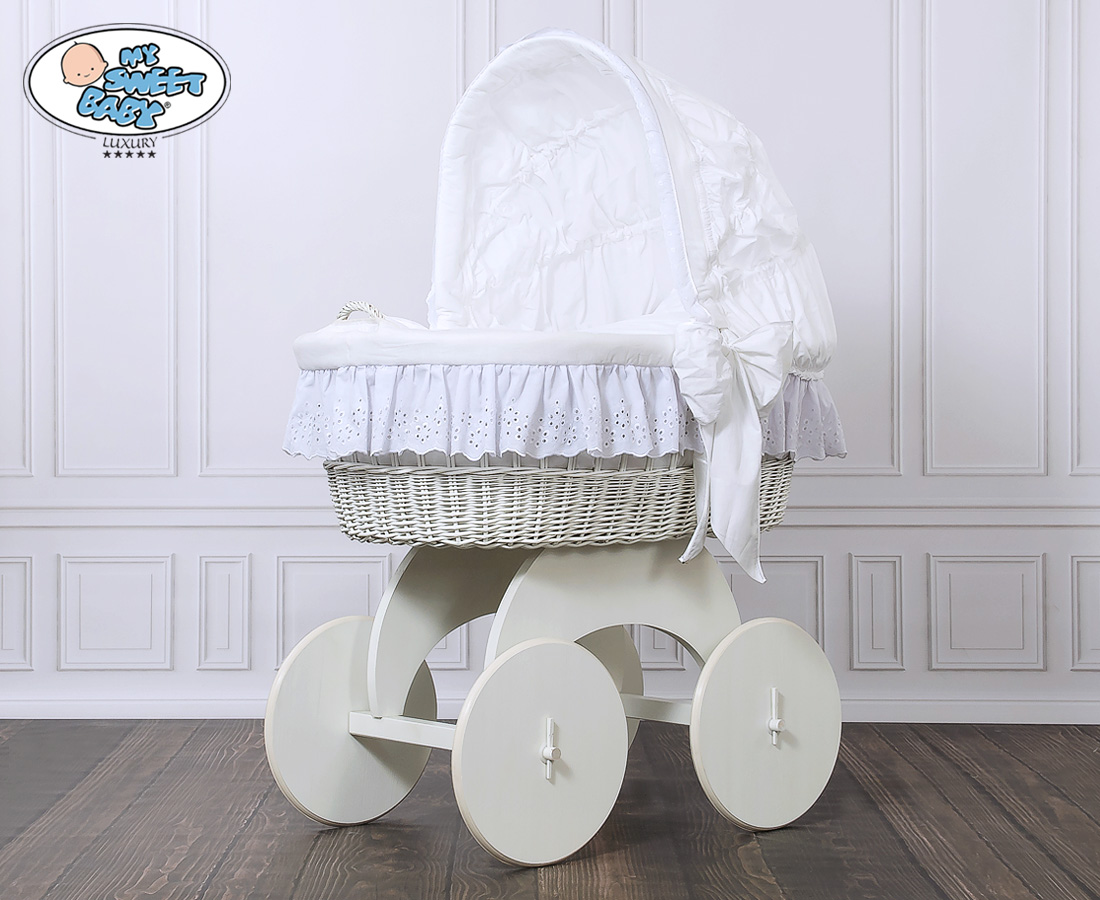 Bollerwagen Babys Haube Sophia nr 70102-912 Ein wunderschöner handgemachter Stubenwagen, der ein gemütliches, Nest bildet. Weiße Farbe von Korb und Holz.
