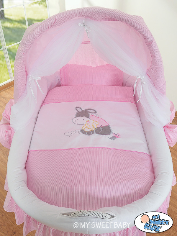 Bollerwagen mit Haube - Bettwäsche Esel Luca rosa Eine ausgezeichnete Lösung für kleine Wohnungen oder Haus. Leise Räder ermöglichen eine einfache Einstellung des Korbs. Dank dessen ist das Kind immer bei dir. DER GRÖßTE WAGEN AUF DEM MARKT!