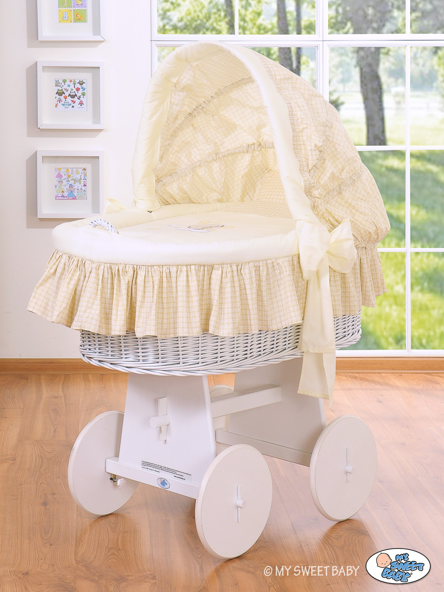 Bollerwagen mit Haube - Bettwäsche Gute Nacht creme Eine ausgezeichnete Lösung für kleine Wohnungen oder Haus. Leise Räder ermöglichen eine einfache Einstellung des Korbs. Dank dessen ist das Kind immer bei dir.