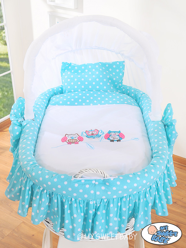 • Fahrgestell aus echtem Holz. SEHR STABIL! Höheres Untergestell als bei den anderen Herrsteller - 50cm. Es ist sehr bequem zum benutzen, weil man sich nicht so bücken muss. • Das Untergestell ist in einer zartbraune Farbe und ist mit einem ökologischen Lack behandelt Große Leichtlaufrädern aus vollem Holz (Durchmesser 30 cm) mit weißen Gummireifen, die sich sehr leicht drehen. Sehr leise auch auf den Parkett, oder Fliesen • Der Korb ist aus Weide durch Handarbeit gefertigt. MEGA GROßE LIEGEFLÄCHE 80cmx45cm, daher länger Nutzbar. • Der Griff beim Korb ermöglicht den Wagen leicht umzustellen. • Das spezielle Haubenmechanismus erlaubt die Haube in alle Positionen aufzustellen. Er ist auf Dauer an den Korb befestigt und die ausgewählte Elemente können sehr leicht abmontiert werden. Dadurch kann der Haubenbezug leicht zum waschen abgenommen werden und ist wieder leicht zurück anzubringen. • Auf jedem Korb liegt eine kuschelige in Baumwolle eingenähte Vliesschicht (2 cm dick). Das macht aus dem Korb ein weiches Nestchen, dass die Geräusche dämpft, und wo Eures Kind geborgen schlafen kann. Das Sortiment enthält auch ein Kissen (35x37cm) und eine Decke (78x78cm) mit einer speziellen Ausfüllung aus Polyestergewebe - bieten einen optimalen Schlafkomfort, sind sehr gesund und werden für die Babys und Allergiker empfohlen. Decke und Kissen in den selben Farben wie der Korbbezug. Alle Elemente können in der Waschmaschine gewaschen werden. • In die Standardaustattung wird zusätzlich eine Matratze aus Pressvlies dazugegeben. Sie ist 4 cm hoch, oval, luftdurchlässig mit einem abnehmbaren, gesteppten Bezug - Waschbar bis 40 Grad. Türkis Adele Zibi Bigi Eulen Haube Bollerwagen
