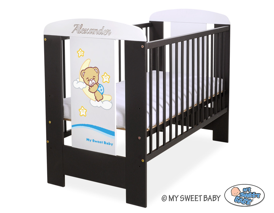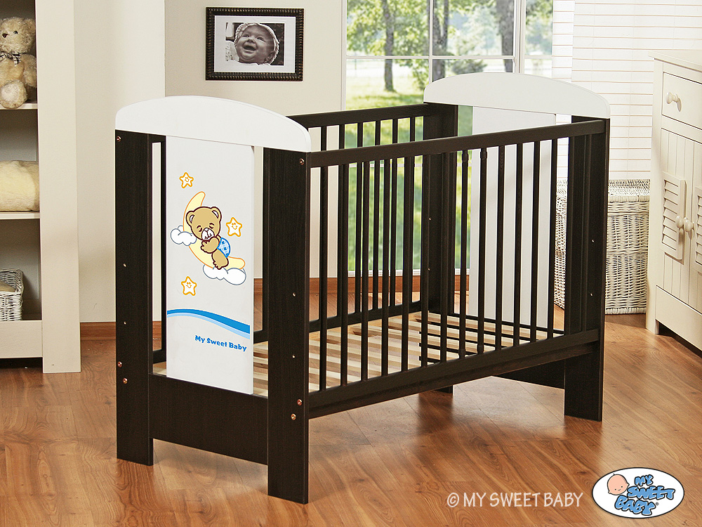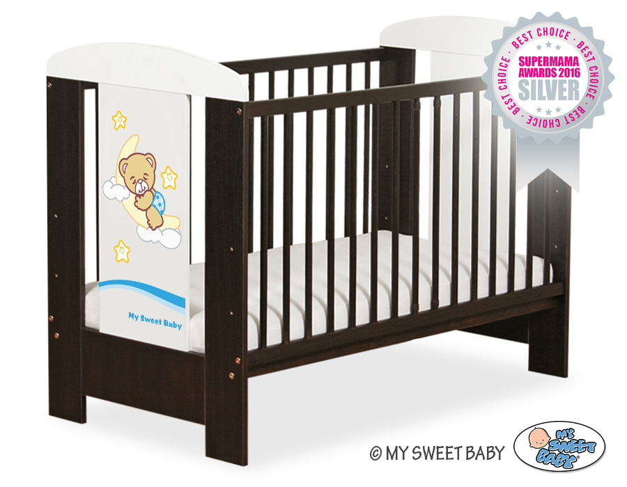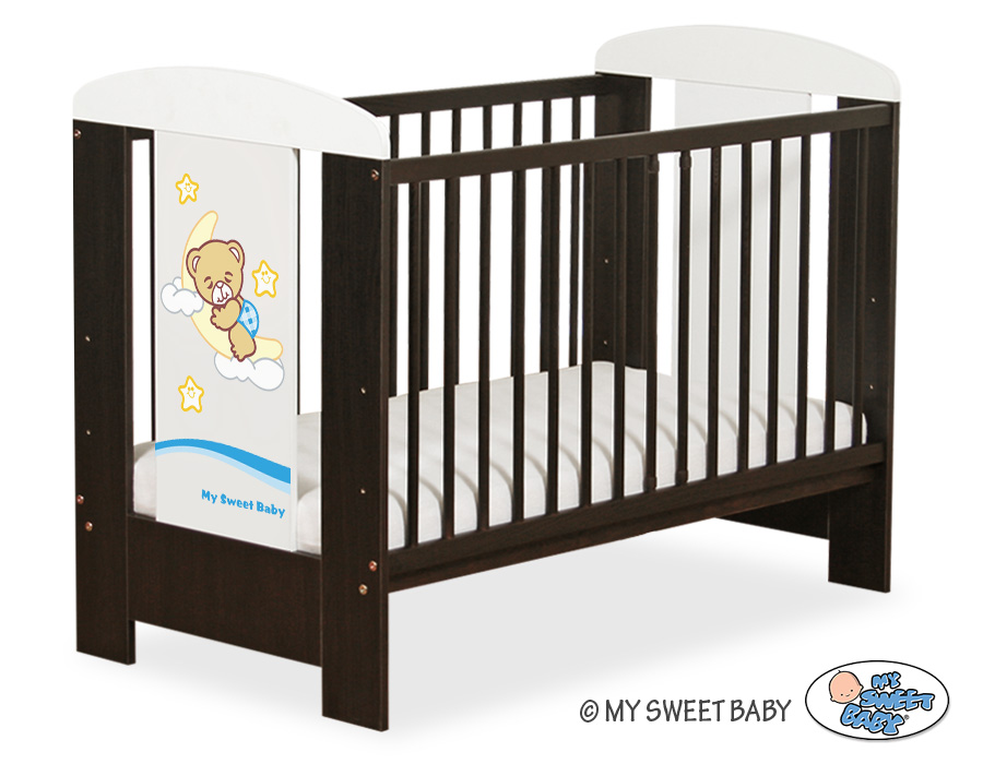 Stubenwagen » Babybett 60x120 cm » Babybett 60x120 Gute Nacht mit Matratze » Braun Gitterbett 120x60cm Gute Nacht