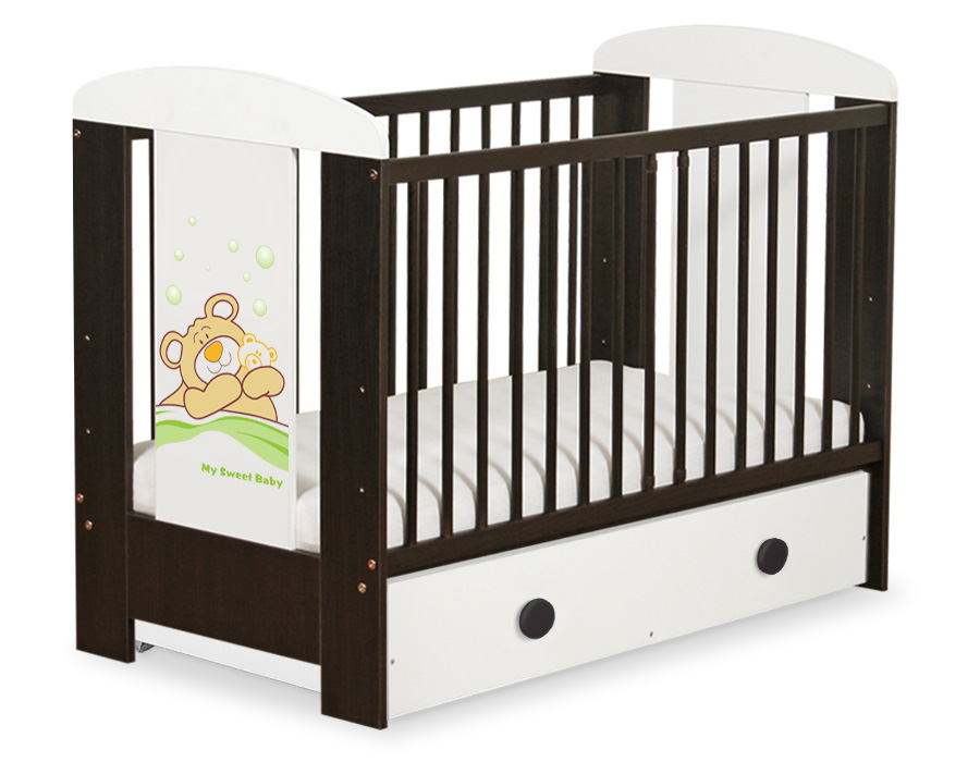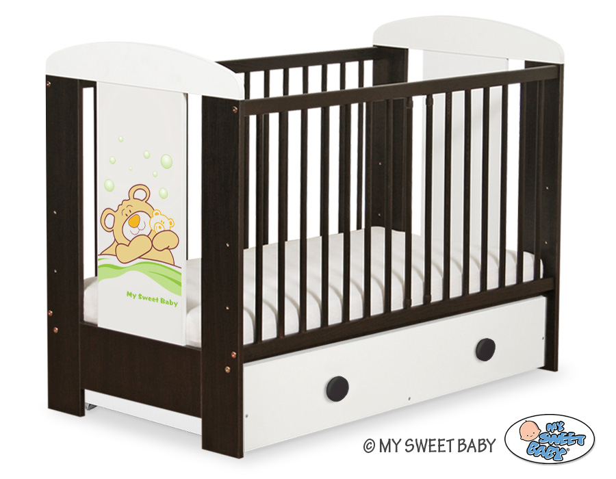 Stubenwagen » Babybett 60x120 cm » Babybetten 120x60cm mit Schublade » Babybett mit Schublade 60x120 Teddy Bär Barnaba » Braun Gitterbett 120x60cm Teddy Bär Barnaba Grün Schublade MAXI