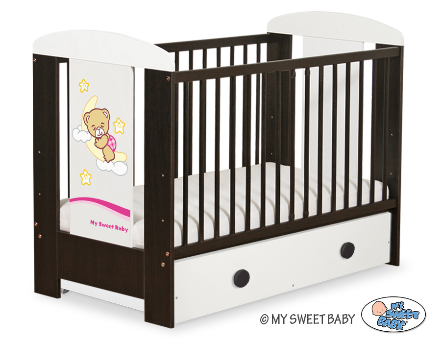 Stubenwagen » Babybett 60x120 cm » Babybetten 120x60cm mit Schublade » Babybett mit Schublade 60x120 Gute Nacht » Braun Kinderbett 120x60cm Gute Nacht Rosa mit Schublade MAXI