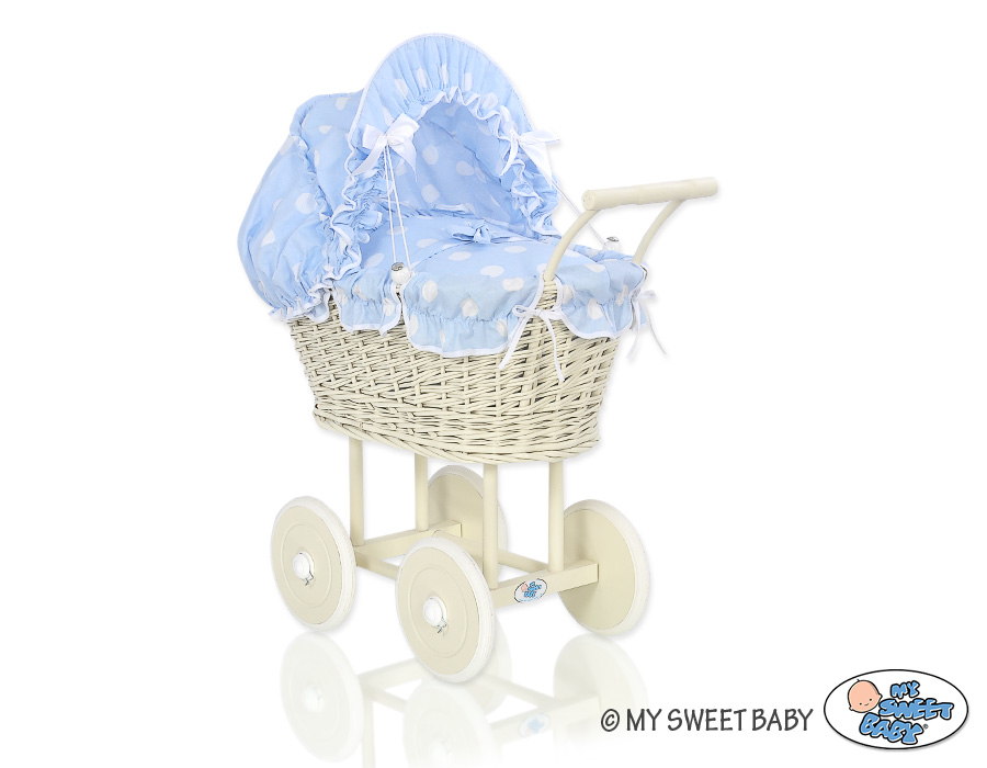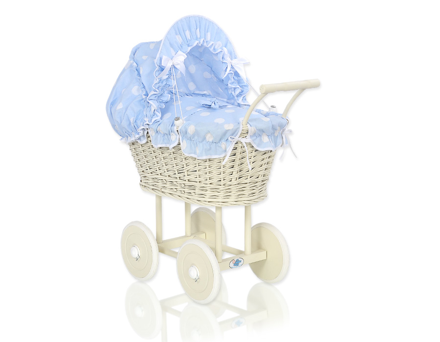 Eine wunderbare Geschenkidee für alle kleinen Mädchen. Sowohl der Korb aus Weide, als auch das Holzuntergestell entstehen in Handarbeit. Die Retropuppenwagen sind in vielen wunderschönen Farben verfügbar. Die sanften Pastelltöne des Puppenwagens ergeben eine wunderschöne Kombination mit den verschiedenen Farben der Bezüge. Dadurch sind unsere Puppenwagen wunderschönes Spielzeug und ein richtiges Hingucker.