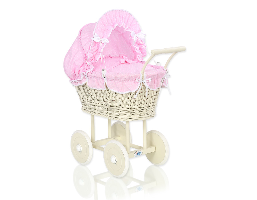Stubenwagen » Spielzeug Kuscheltiere » Puppenwagen und Spielzeug » Puppenwagen aus Weide » Creme Weide Retro Puppenwagen Rosa mit Punktmuster Weiß nr 101699-530