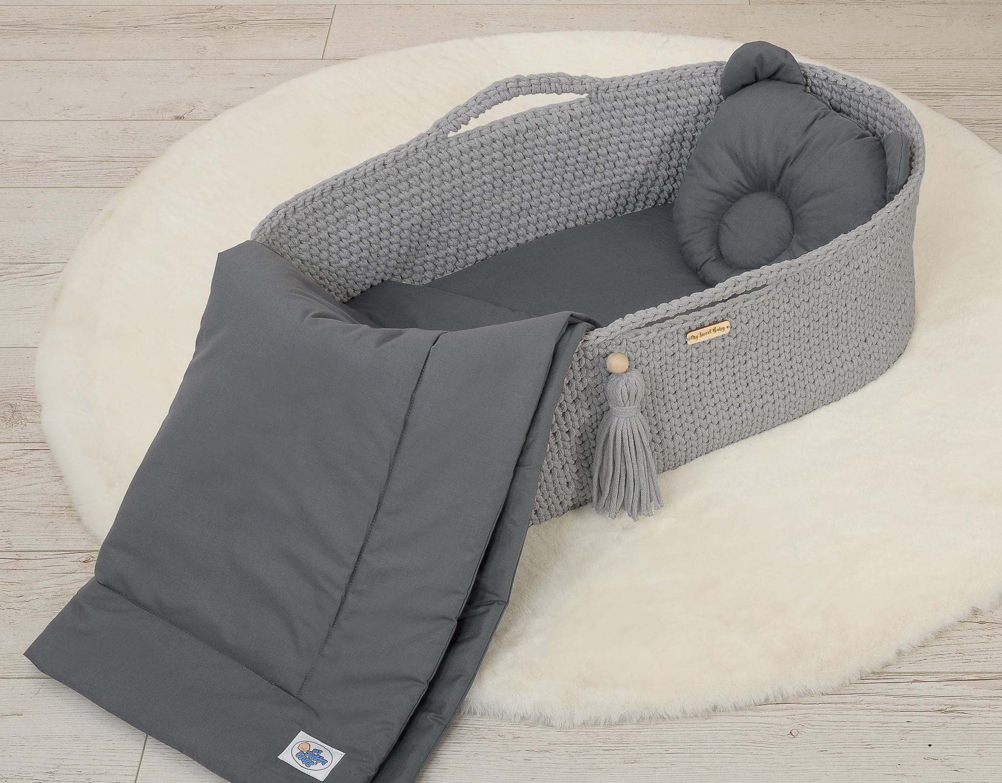 Bettset für Moseskorb Decke mit Kissen Bär 2tlg - Anthrazit