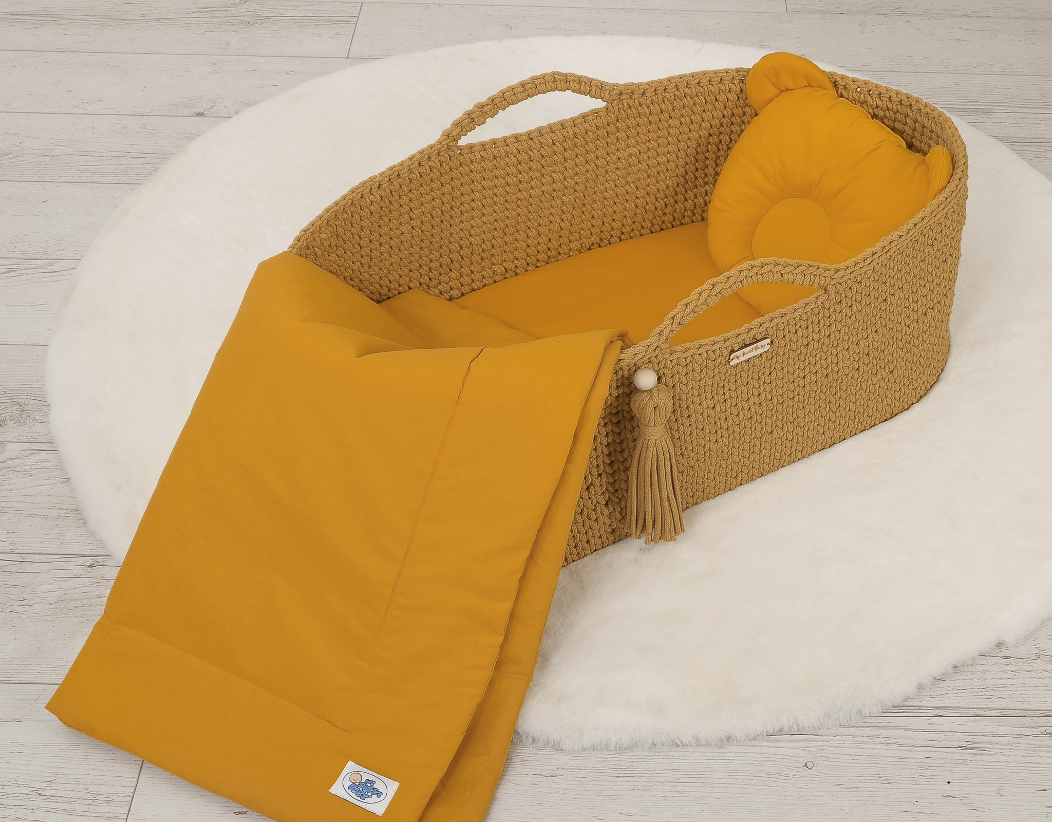 Bettset für Moseskorb Decke mit Kissen Bär 2tlg - honiggelb