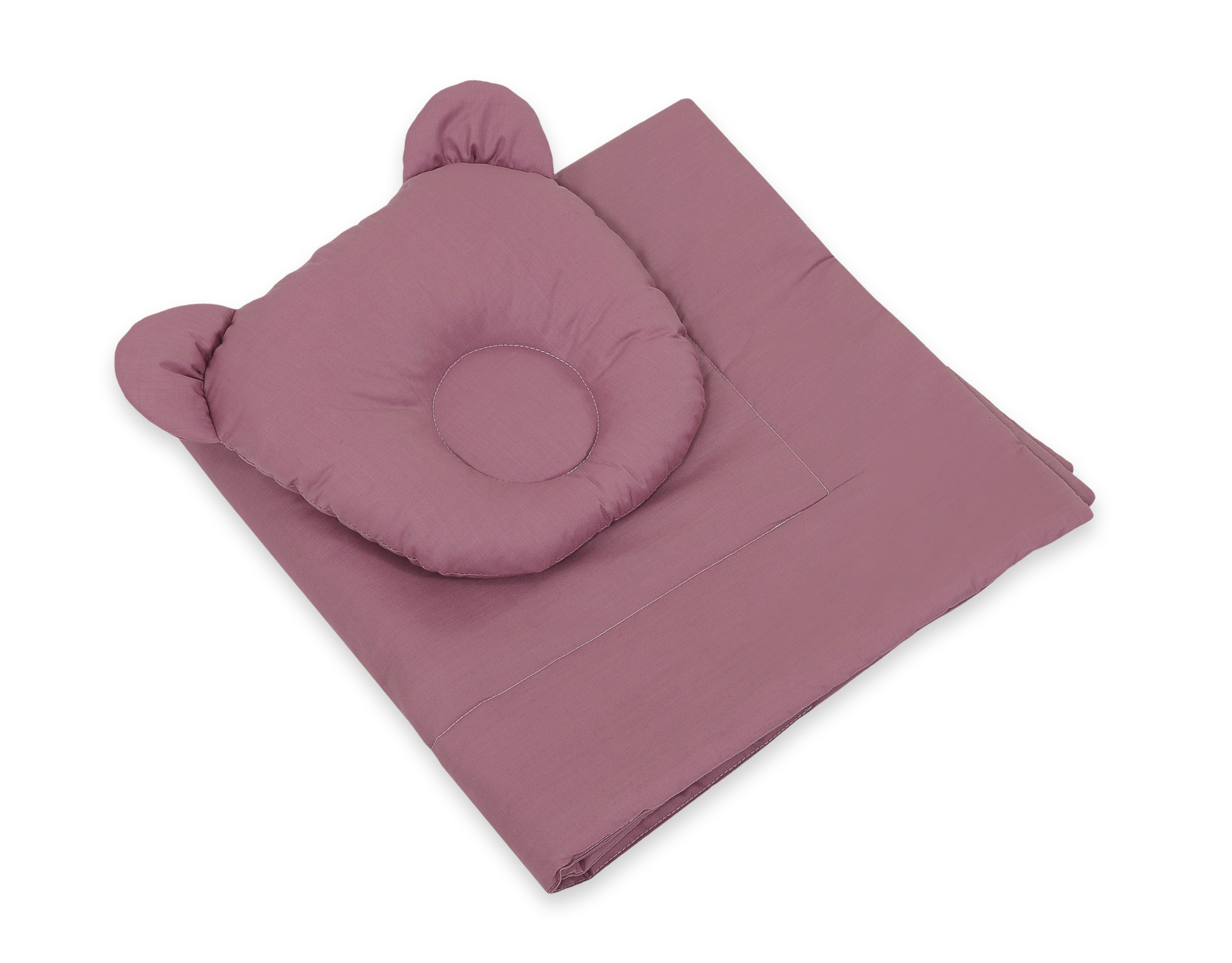 Das ganze Set ist maschinenwaschbar, trocknet schnell und verformt sich nicht; Die Maße sind für Kinderwagen, Kinderbett, Wiege oder Autositz geeignet, Das Kind kann leicht und fest eingewickelt werden: Kissen ca. 27x25cm, Steppdecke ca. 77x77 cm. Pastellviolett 2tlg Bär Kissen Decke