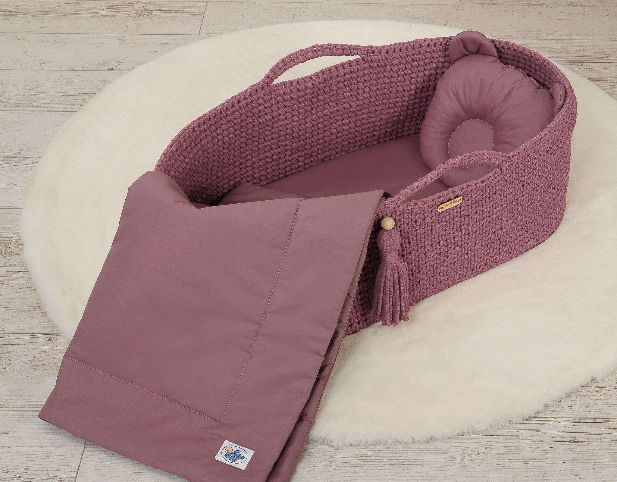 Bettset für Moseskorb Decke mit Kissen Bär 2tlg - Pastellviolett