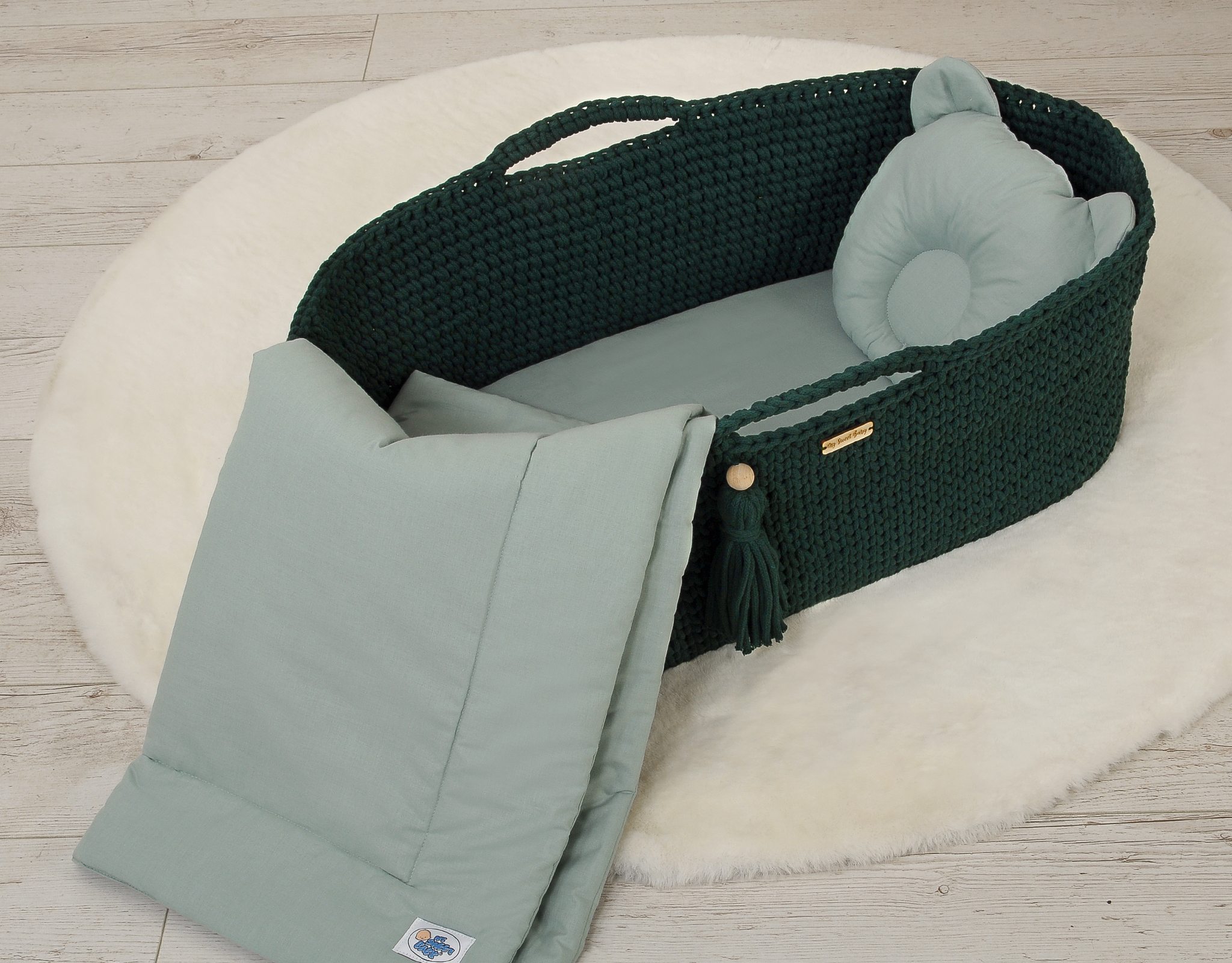Bettset für Moseskorb Decke mit Kissen Bär 2tlg - weissgrün
