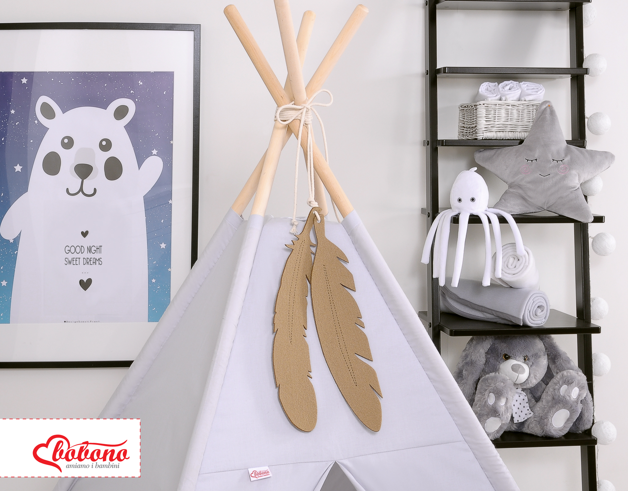 Dekorative Filz Federn 2tlg - beige Dekorative Filzfedern. Schöne Dekoration des Kinderzimmers. Aus 4 mm dickem Filz. Die Federn können überall aufgehängt werden.