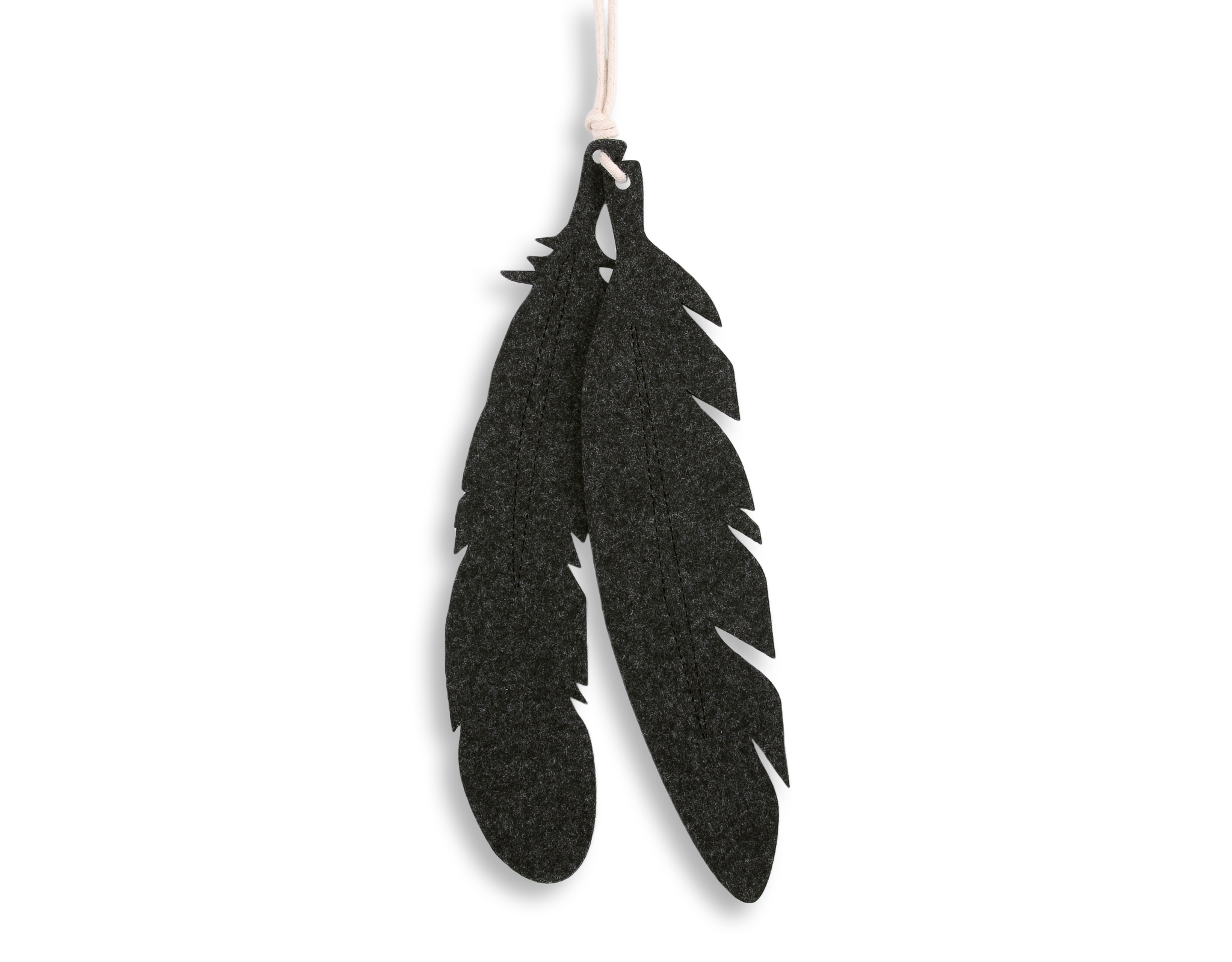 2 Stück im Set + Befestigungsschnur. Anthrazit 2tlg Federn Filz Dekorative