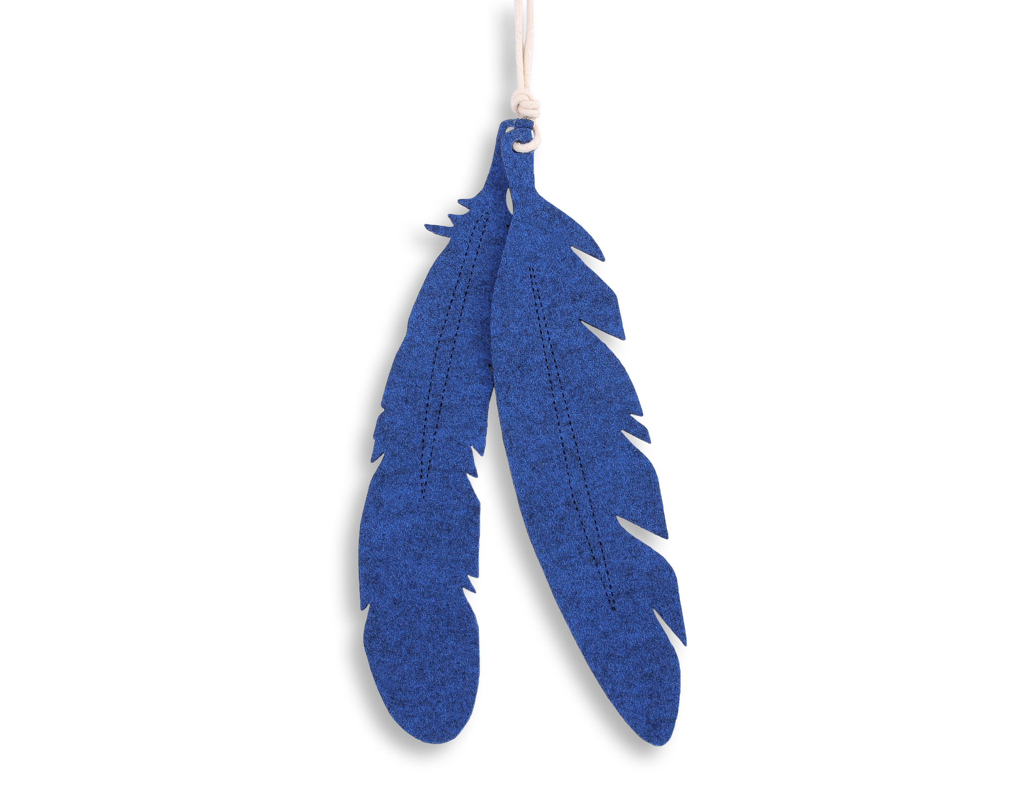 2 Stück im Set + Befestigungsschnur. Blau 2tlg Federn Filz Dekorative