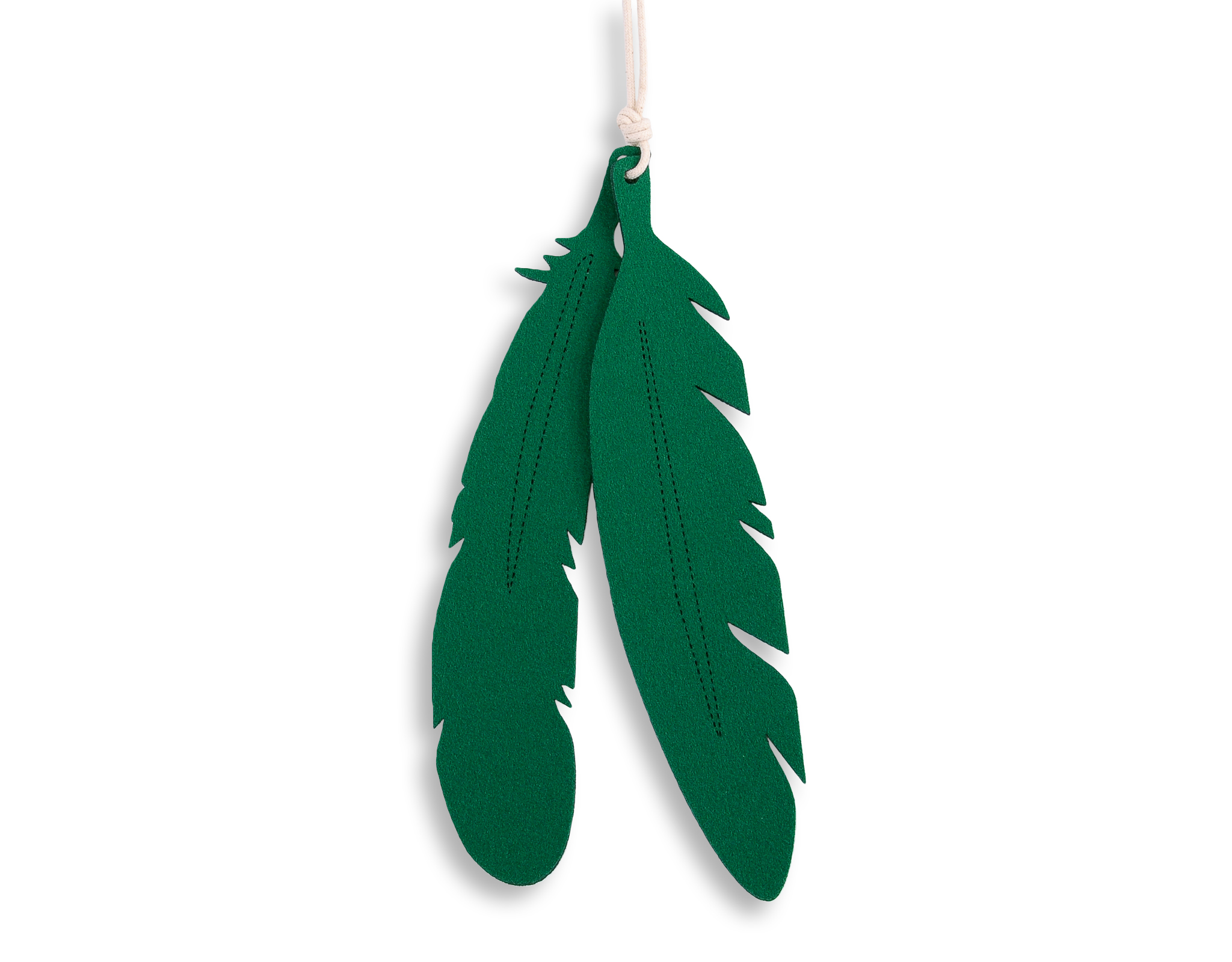 2 Stück im Set + Befestigungsschnur. Grün 2tlg Federn Filz Dekorative