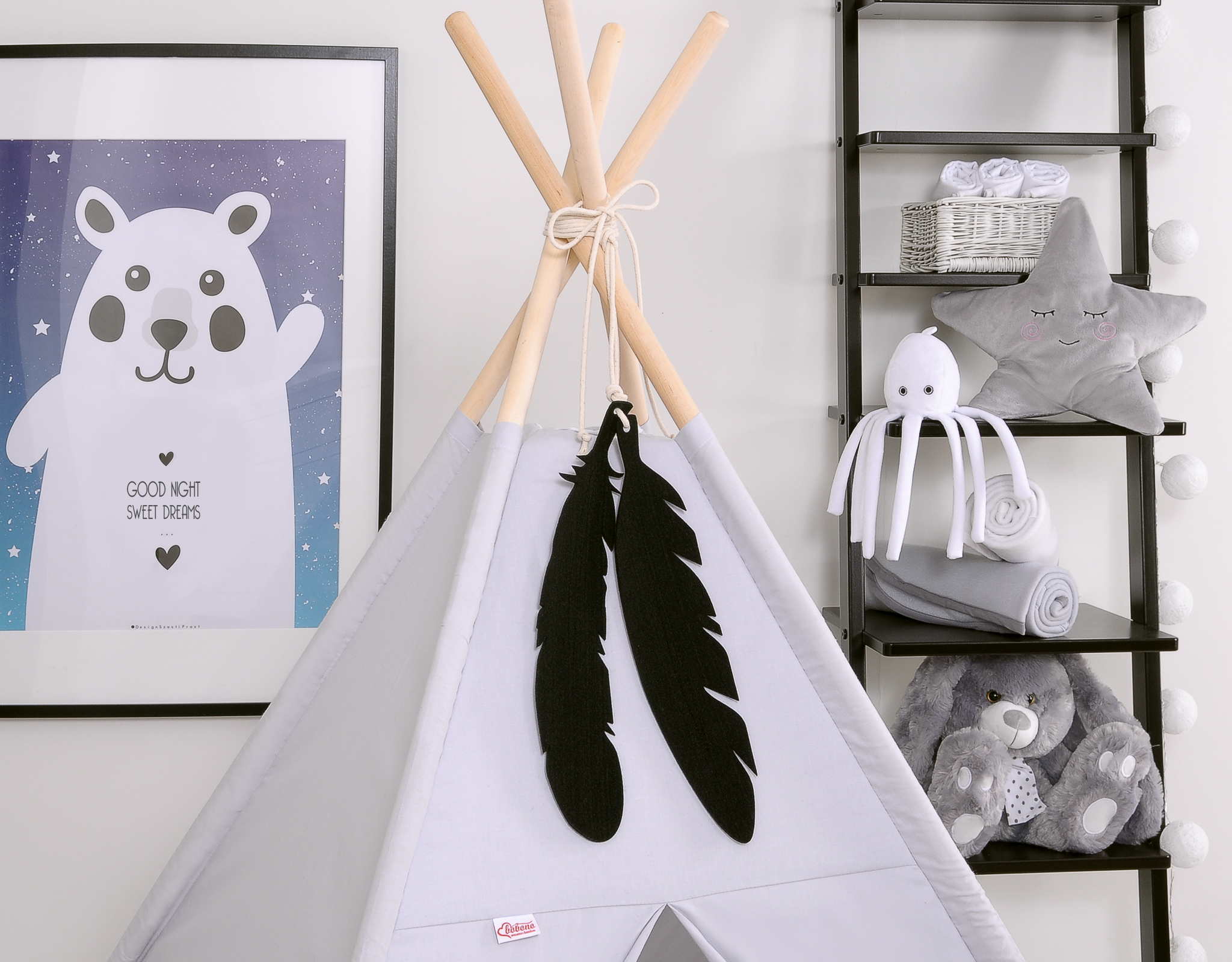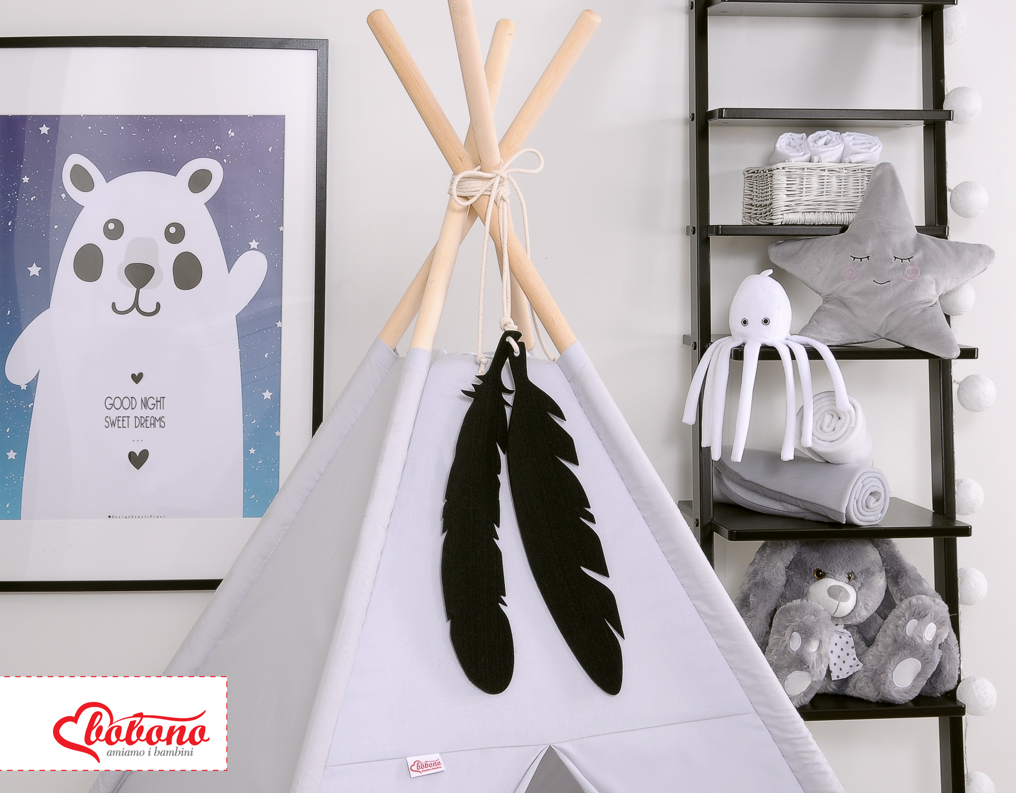 Dekorative Filz Federn 2tlg - schwarz Dekorative Filzfedern. Schöne Dekoration des Kinderzimmers. Aus 4 mm dickem Filz. Die Federn können überall aufgehängt werden.