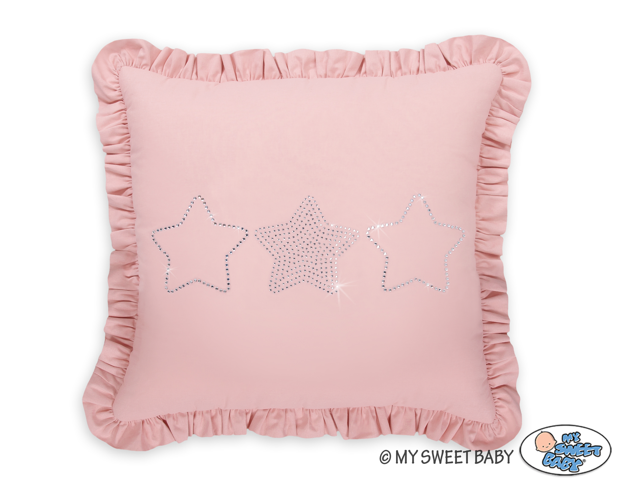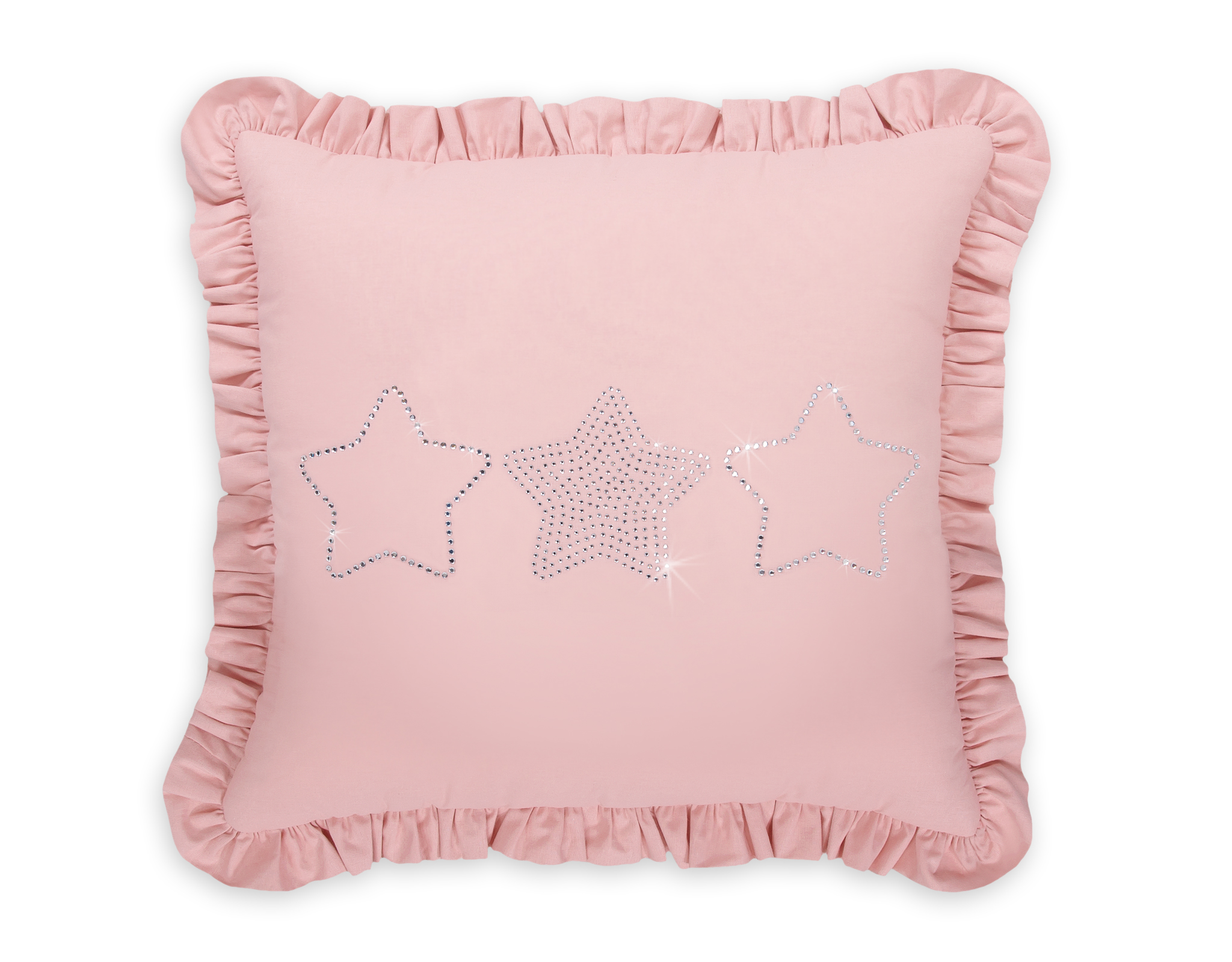 Elegantes weiches und flauschiges Kissen mit Rüsche. Der Kissenbezug ist ein Blickfang durch die schimmernde Applikation aus feinen Zirkonen auf glattem Baumwollstoff. Das Kissen ist einfarbig und besteht aus 100% Baumwolle. Die Füllung besteht aus ECO Fillball Gewebe. Das sind dünne, weiche Faden, die zum kleinen Bällchen geformt wurden. Durch diese Produktionsart sind die "Bällchen" etastisch, weich und atmungsaktiv. Perfekt als farbenfrohe Dekoration für Kinderzimmer. Das Kissen passt perfekt zu unseren Bettwäsche-Sets.