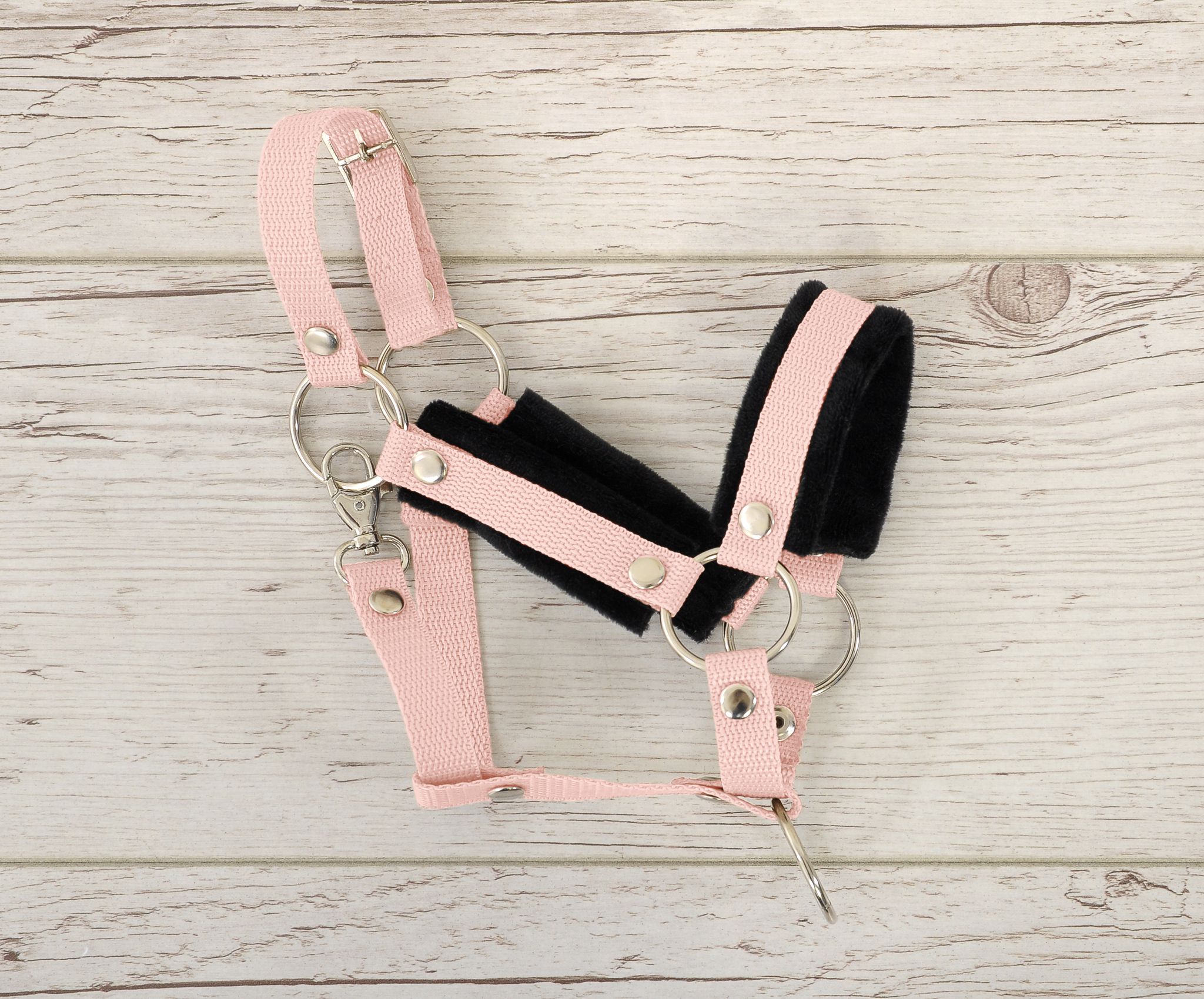 Ein praktisches und haltbares Halfter mit Pelz für das Hobby-Pferd. Hergestellt aus hochwertigem Gurtband von 1,5 cm Breite und weichem Minky-Material. Verstellbare Schnalle für eine perfekte Anpassung an das Pferd. Einfacher Verschluss mit Karabinerhaken. Metallelemente des Halfters - wie die Verschlüsse, Metallringe, Schnalle zum Verstellen und Karabinerhakenverschluss in silberner Farbe. Alles elegant und praktisch. Das Halfter ist einfach zu handhaben, robust und schmutzabweisend. Es werden viele modische Farben angeboten, die perfekt auf unsere Hobbypferde abgestimmt werden können.