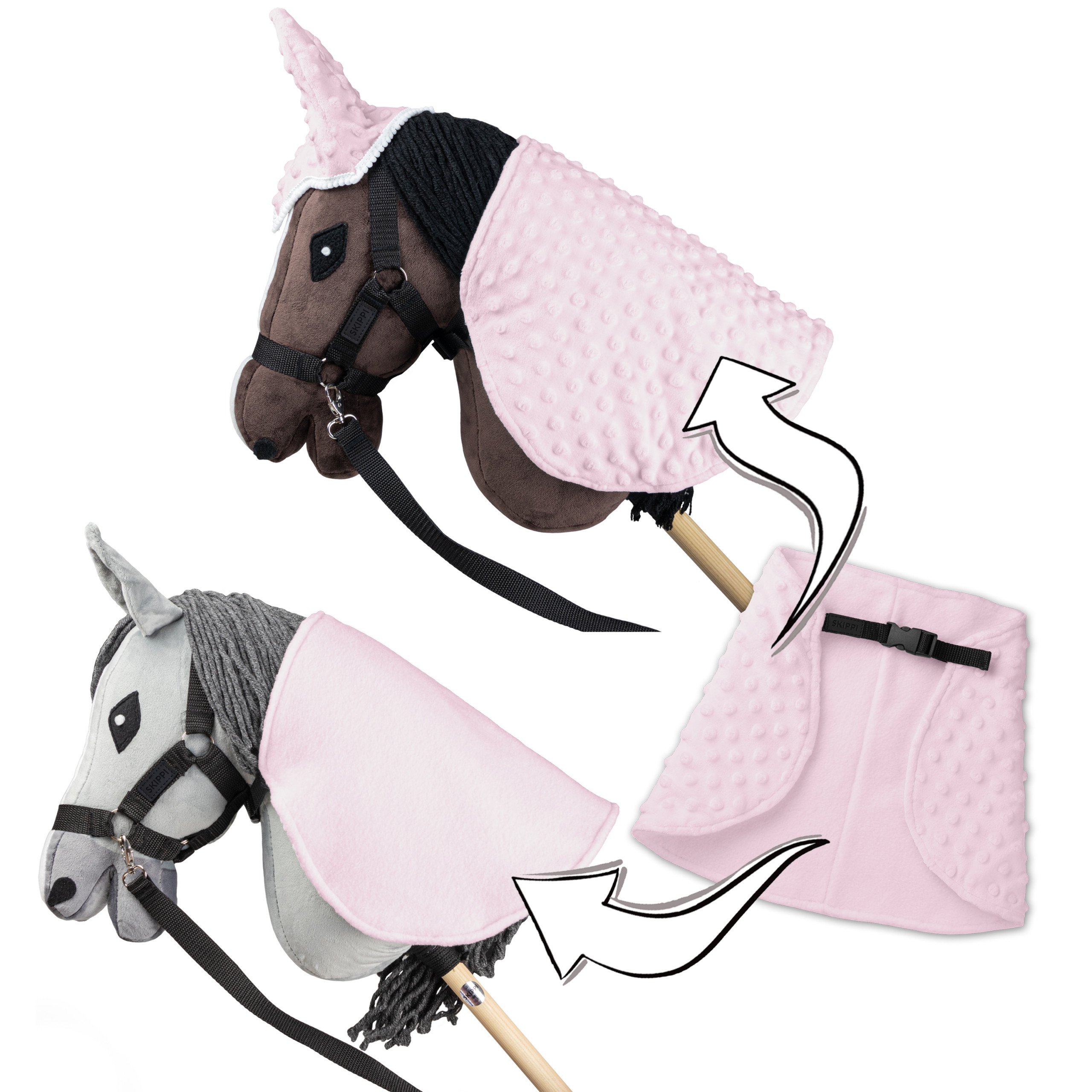 Die Decke und die Fliegenohren sind nicht nur ein stilvolles und niedliches Accessoire, sondern auch ein praktisches Element der Hobby Horse-Ausrüstung. Hergestellt aus hochwertigen Materialien, bieten sie Schutz vor Schmutz und Beschädigungen. Sie ermöglichen es, das Aussehen des Pferdchens zu personalisieren und ihm einen einzigartigen Charakter zu verleihen. Es ist ein Geschenk, das sicher Freude bereiten und noch mehr Magie in jedes Hobby Horse-Spiel bringen wird.