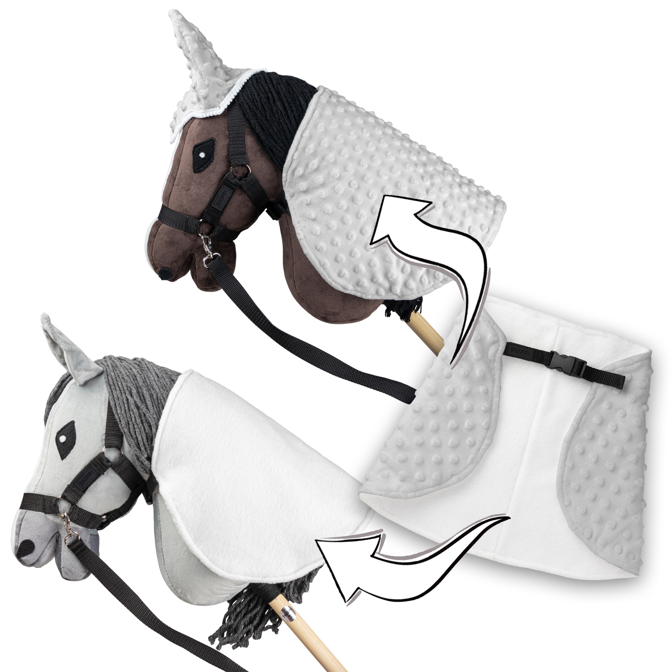 Doppelseitige Decke mit Fliegenohren für Steckenpferd A3 A4 Grau