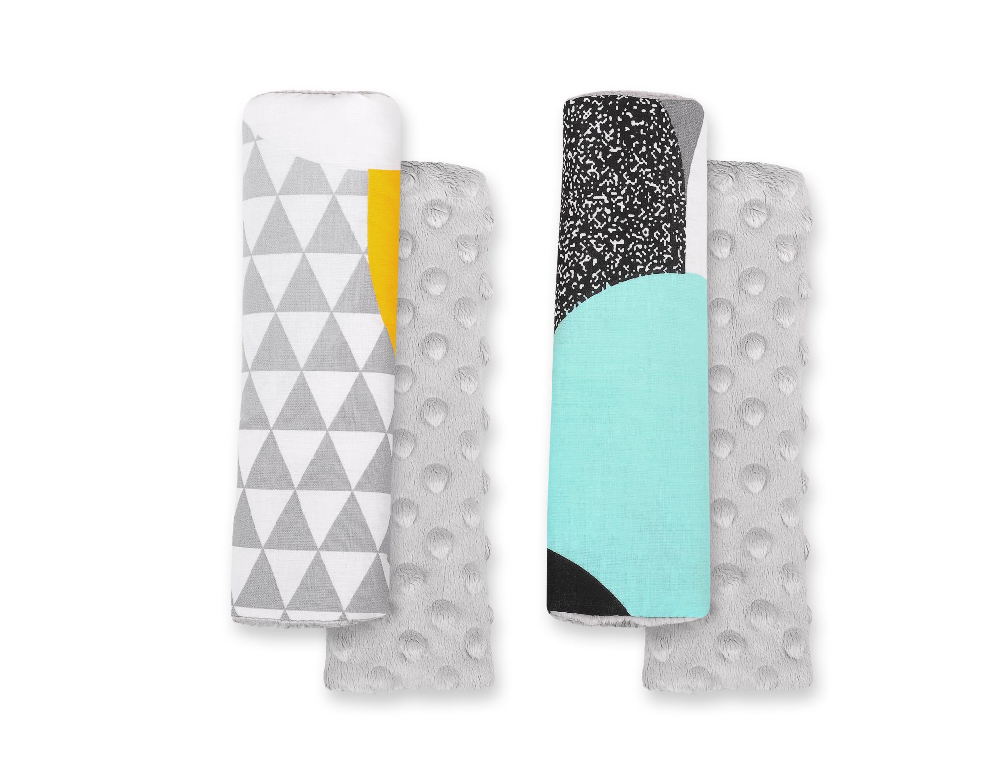 und weichem Minky. Die Gurte werden mit Klettverschluss befestigt, sodass das Anlegen der Gurte nicht lange dauert. Bequeme und weiche Polster bieten Ihrem Kind Komfort. Starre und nicht bequeme Gurte werden nicht länger problematisch sein. Das Set enthält 2 Stück.