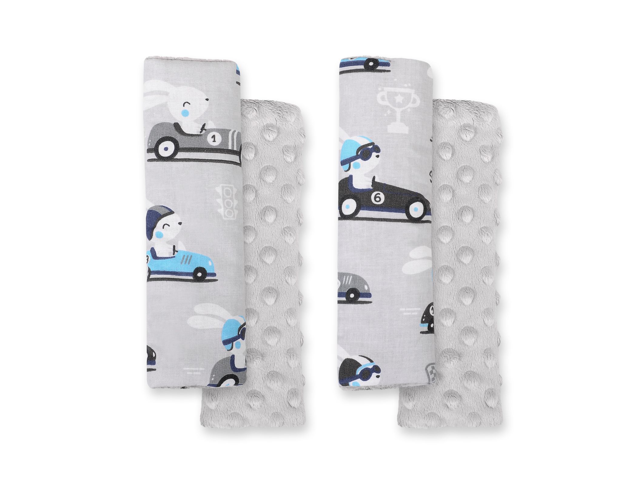 und weichem Minky. Die Gurte werden mit Klettverschluss befestigt, sodass das Anlegen der Gurte nicht lange dauert. Bequeme und weiche Polster bieten Ihrem Kind Komfort. Starre und nicht bequeme Gurte werden nicht länger problematisch sein. Das Set enthält 2 Stück.