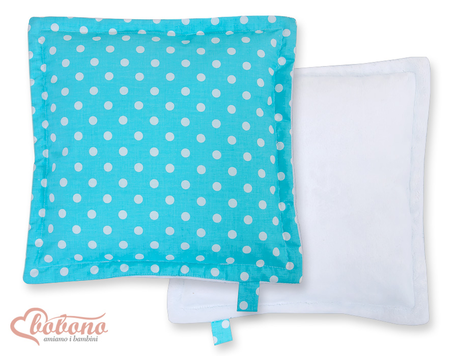 Samtweiches, doppelseitiges Kissen für einen Kinderwagen oder Kinderbett. Aus weichem Plüsch Stoff und bunte Baumwolle.