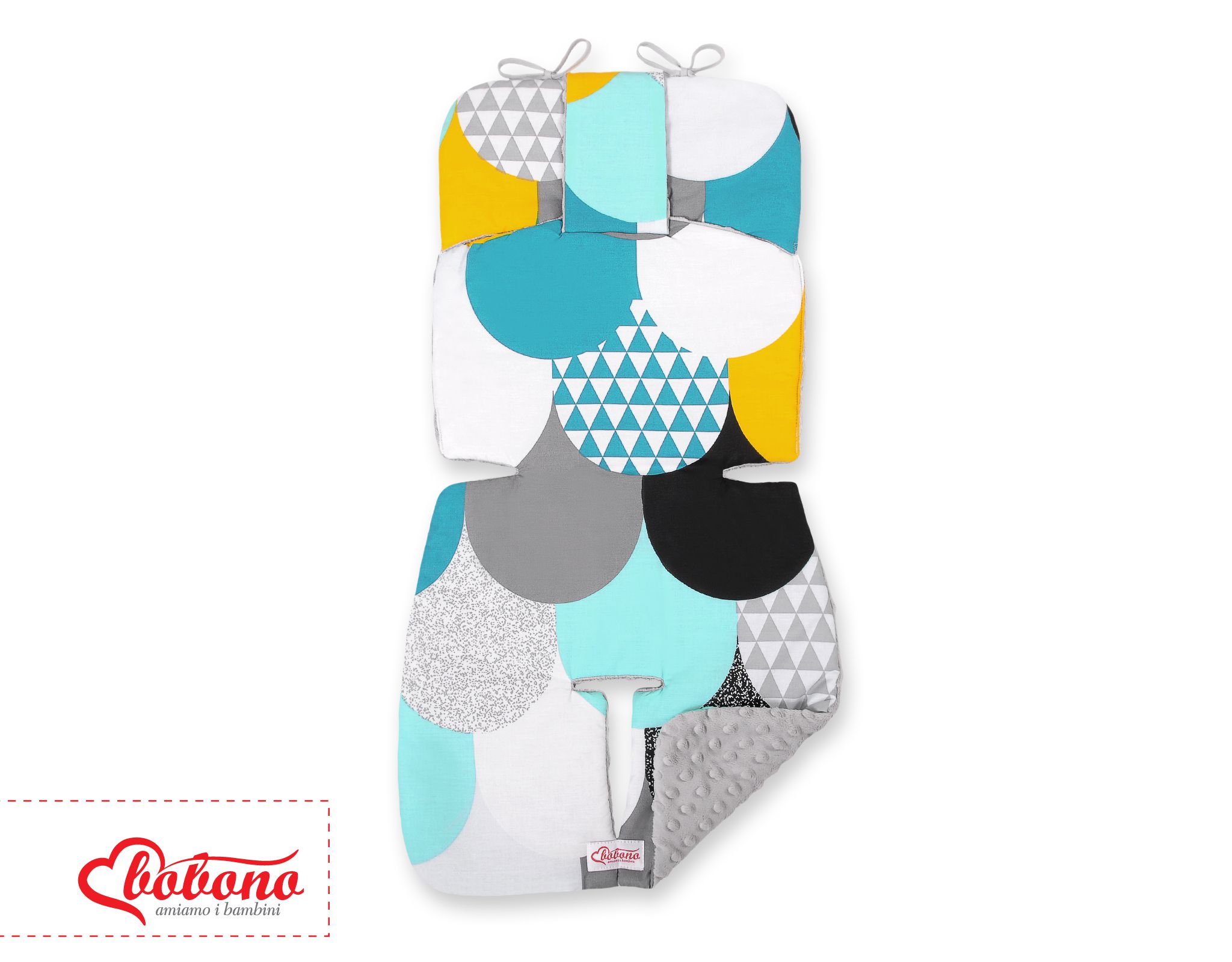 Stubenwagen » Kindersitz & Kinderwagen Zubehör » Doppelseitige Sitzauflagen » Doppelseitige Sitzauflage BOBONO - farbige Fischschuppen/grau