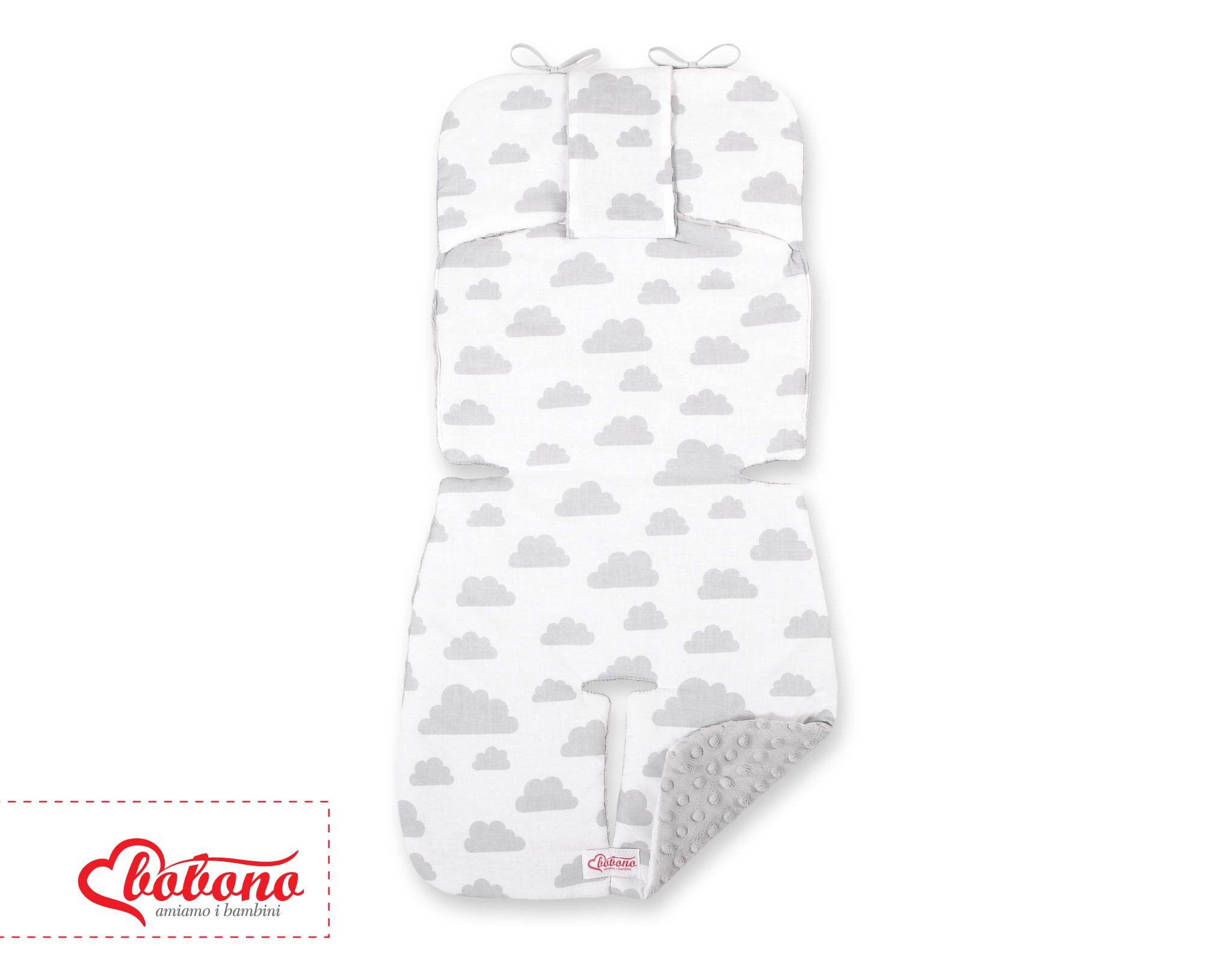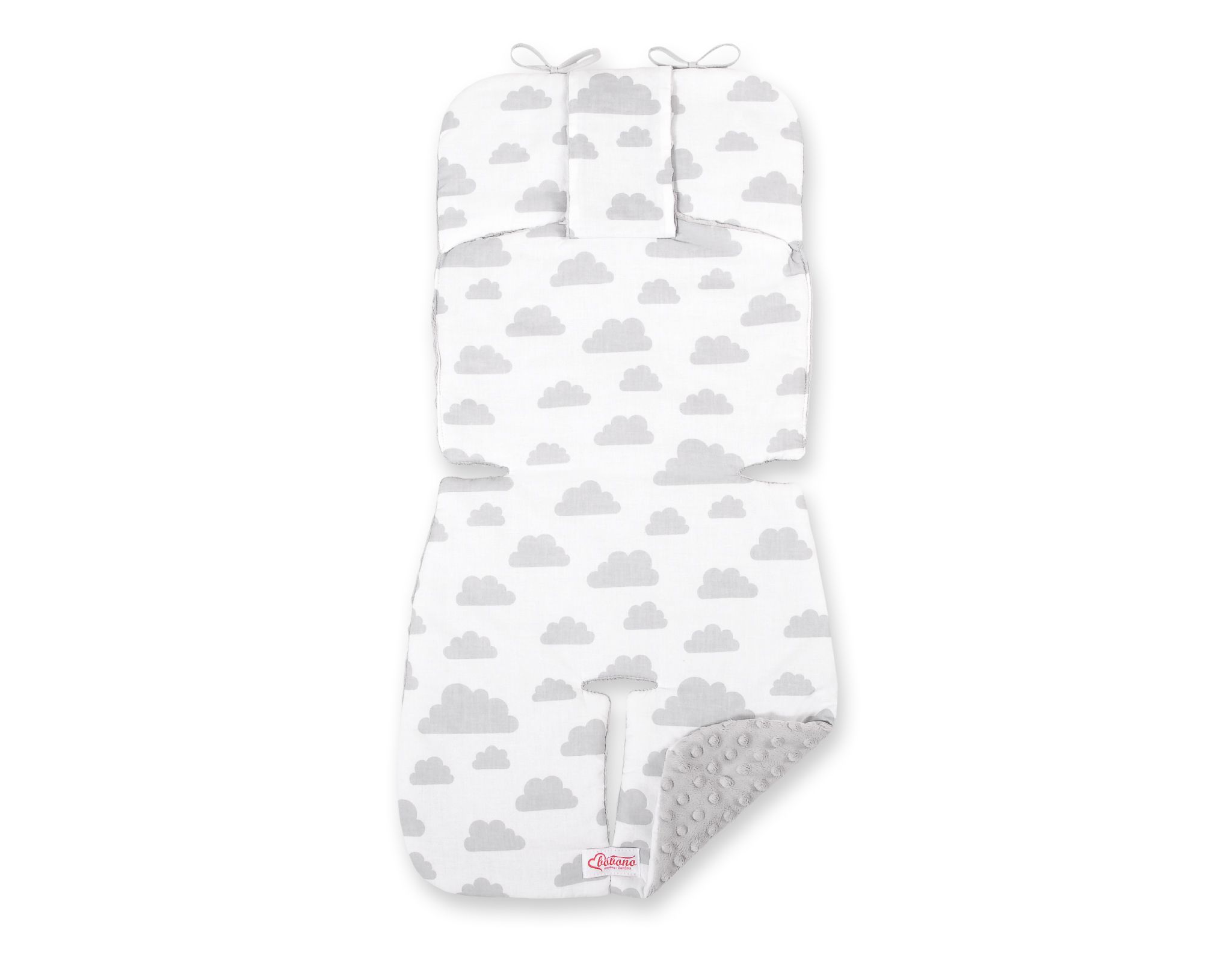 Kinderwageneinlage - extrem weich und zart. Doppelseitig - aus 100% Baumwolle und weichem Minky-Fleece. Die speziell zertifizierte Füllung der Auflage garantiert optimale Elastizität und Weichheit. Schützt die empfindliche Haut des Kindes vor dem Kunststoffbezug des Kinderwagens und bietet Komfort. Schützt den Kinderwagen vor Schmutz. Die Kinderwagen-Einlagen besitzen Schlitze für die 5-Punkt-Sicherheitsgurte. Es ist universell, kann unabhängig von der Art des Kinderwagens verwendet werden.