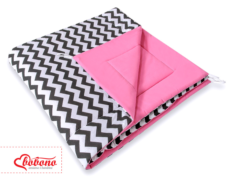 Doppelseitige Teepee Spielmatte - Chevron schwarz/ dunkel rosa