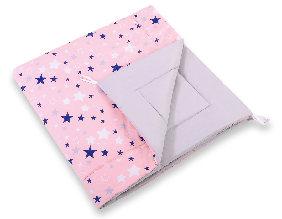 Doppelseitige Teepee Spielmatte - rosa-blaue Sternen/grau