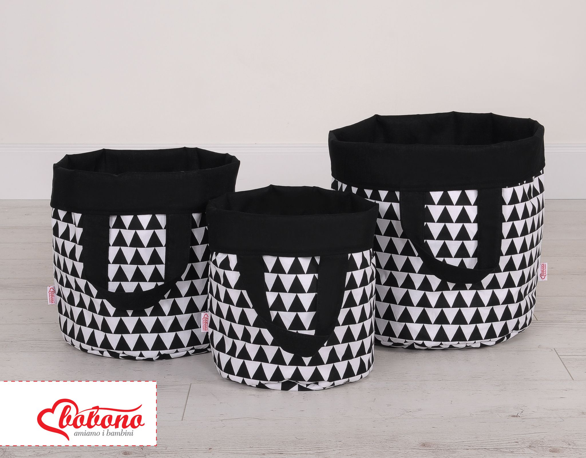 Stubenwagen » Spielzeug Kuscheltiere » Doppelseitiger Spielzeugkorb » Doppelseitiger Spielzeugkorb L » Doppelseitiger Spielzeugkorb L - Dreiecke Schwarz/schwarz