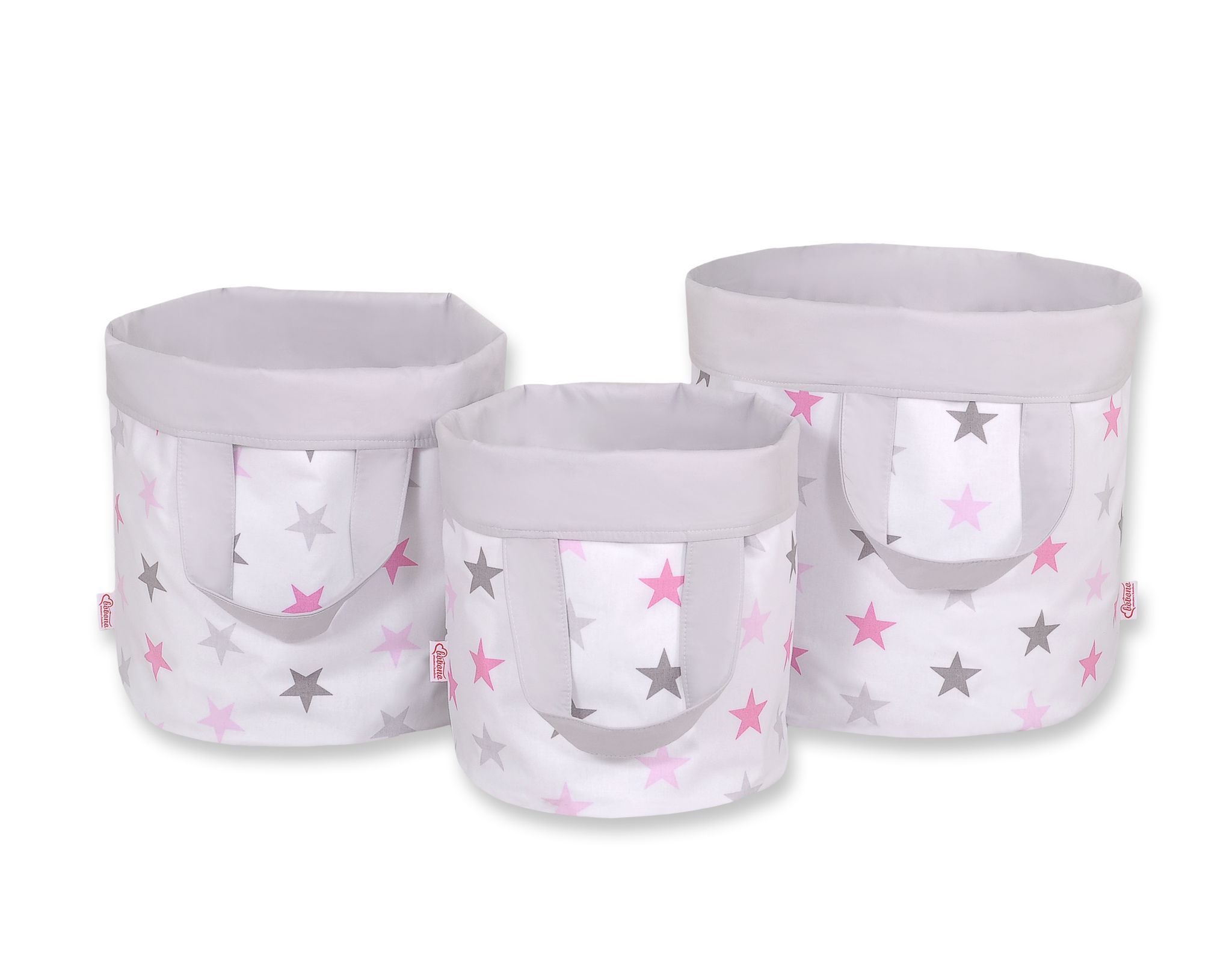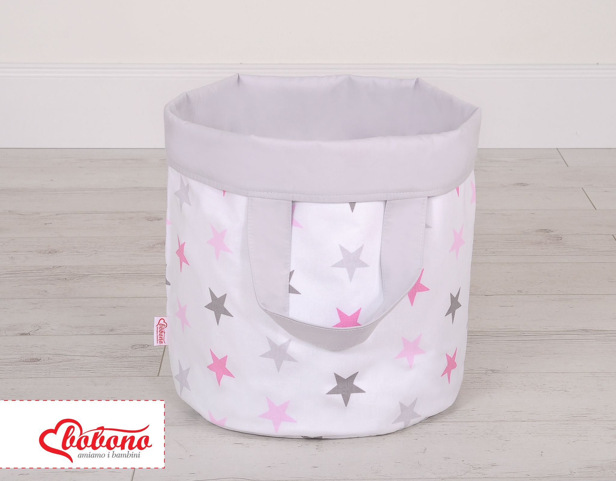 Stubenwagen » Spielzeug Kuscheltiere » Doppelseitiger Spielzeugkorb » Doppelseitiger Spielzeugkorb L » Doppelseitiger Spielzeugkorb L - Rosa-graue Sternen/grau