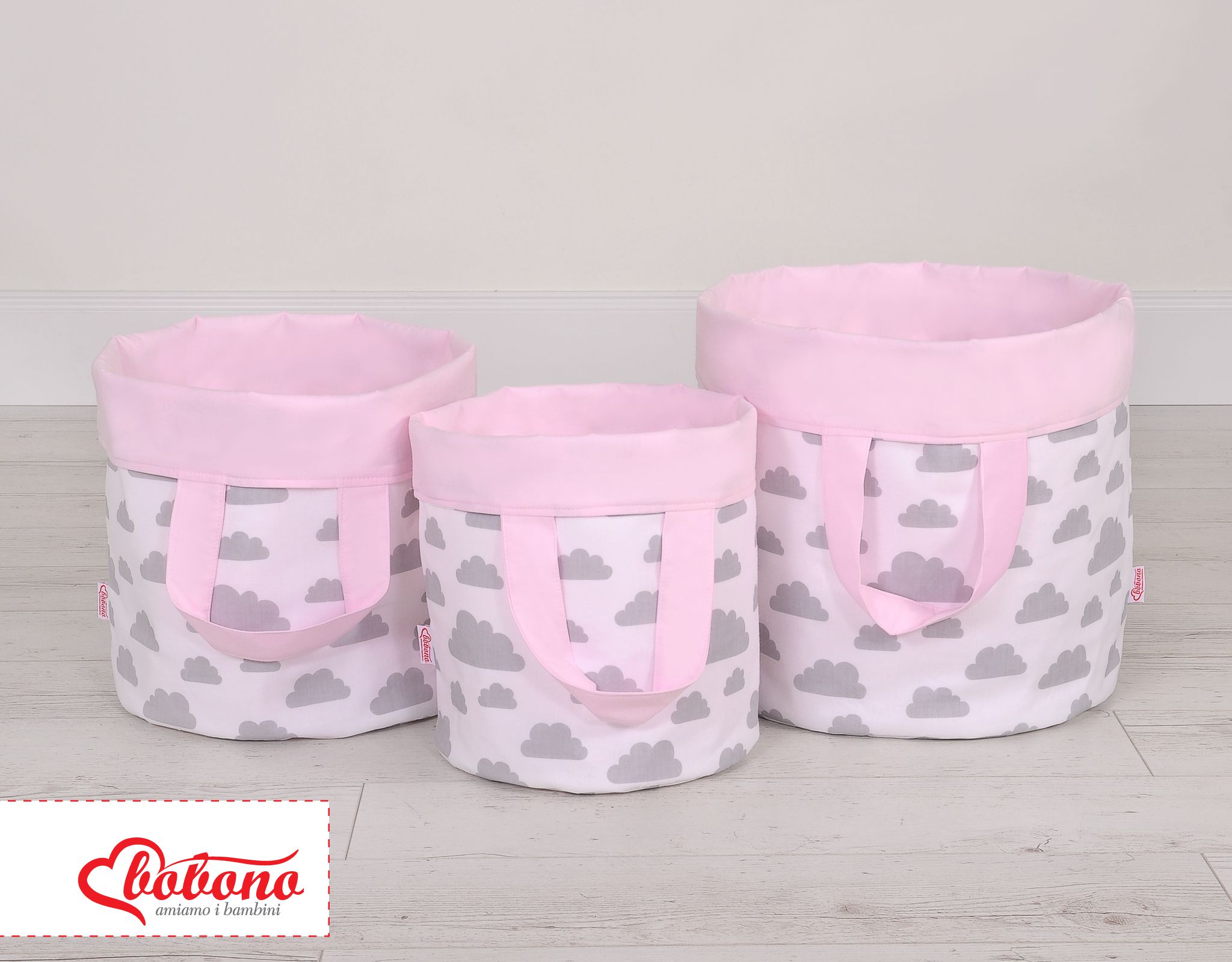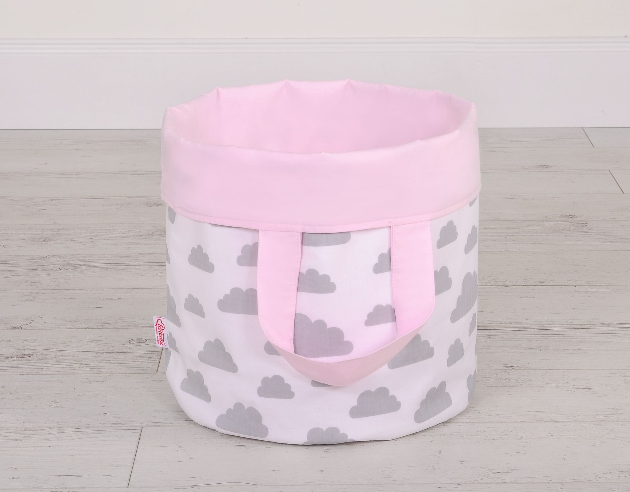 Stubenwagen » Spielzeug Kuscheltiere » Doppelseitiger Spielzeugkorb » Doppelseitiger Spielzeugkorb L » Doppelseitiger Spielzeugkorb L - Wolken grau/rosa